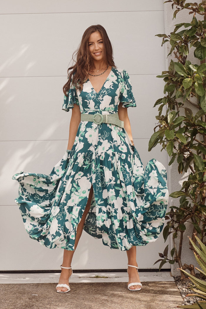 Ronda Wrap Maxi Dress In Navy And Pink Floral