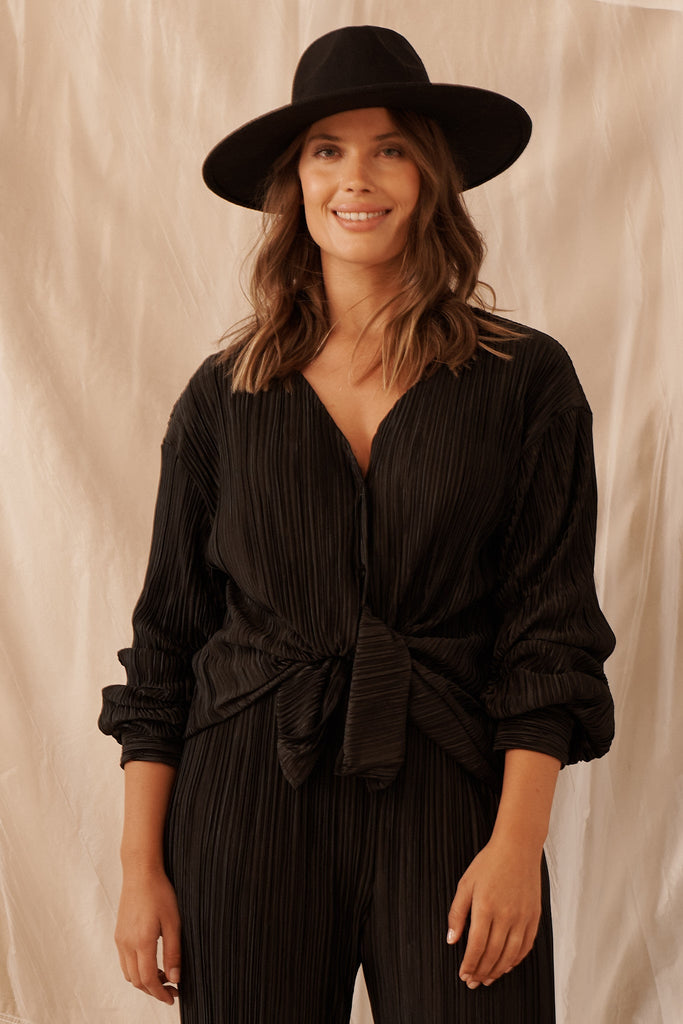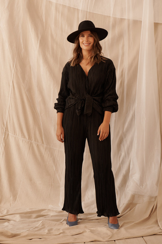 Plissé or crinkle crêpe takes its name from the French word for fold. A lightweight fabric with a crinkled, puckered surface, formed in ridges or stripes. It feels amazing against your skin and looks incredible dressed up or styled more casually. Our Avis Little Black Dress will be your new go-to from dinner dates to special occasions alike! Our Sherida Plisse Shirt is relaxed enough to wear to lounging but luxe enough to style up for work or evenings out. Wear it with our Harmony Plisse Pants for a perfect look head to toe.