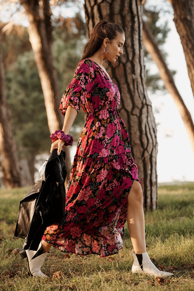 Featuring a tie waist and flutter sleeve details, our Wendie Maxi Dress is the perfect fusion of comfort and style! Toughen up a feminine floral with our newest faux leather Ainsley Biker Jacket.
