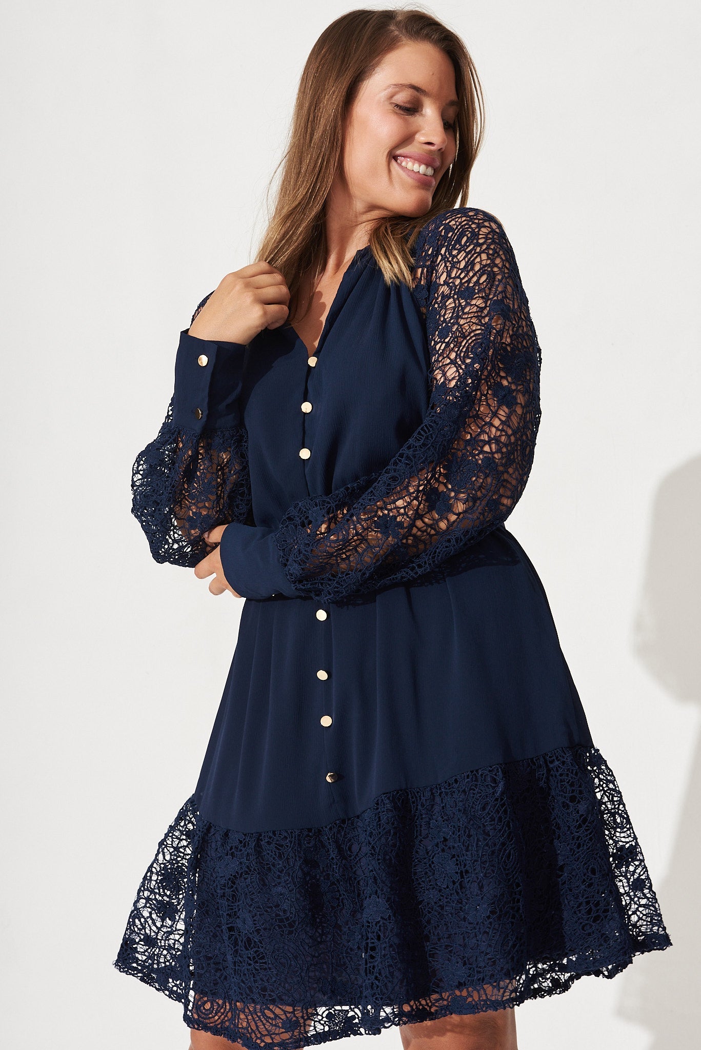 Introducing your new dream dress, the Alannah Dress! Featuring a fit & flare silhouette with a dreamy long lace sleeve, & ruffle lace hem on the skirt. Style this one to perfection for your next special event with pretty accessories, & strappy heels.