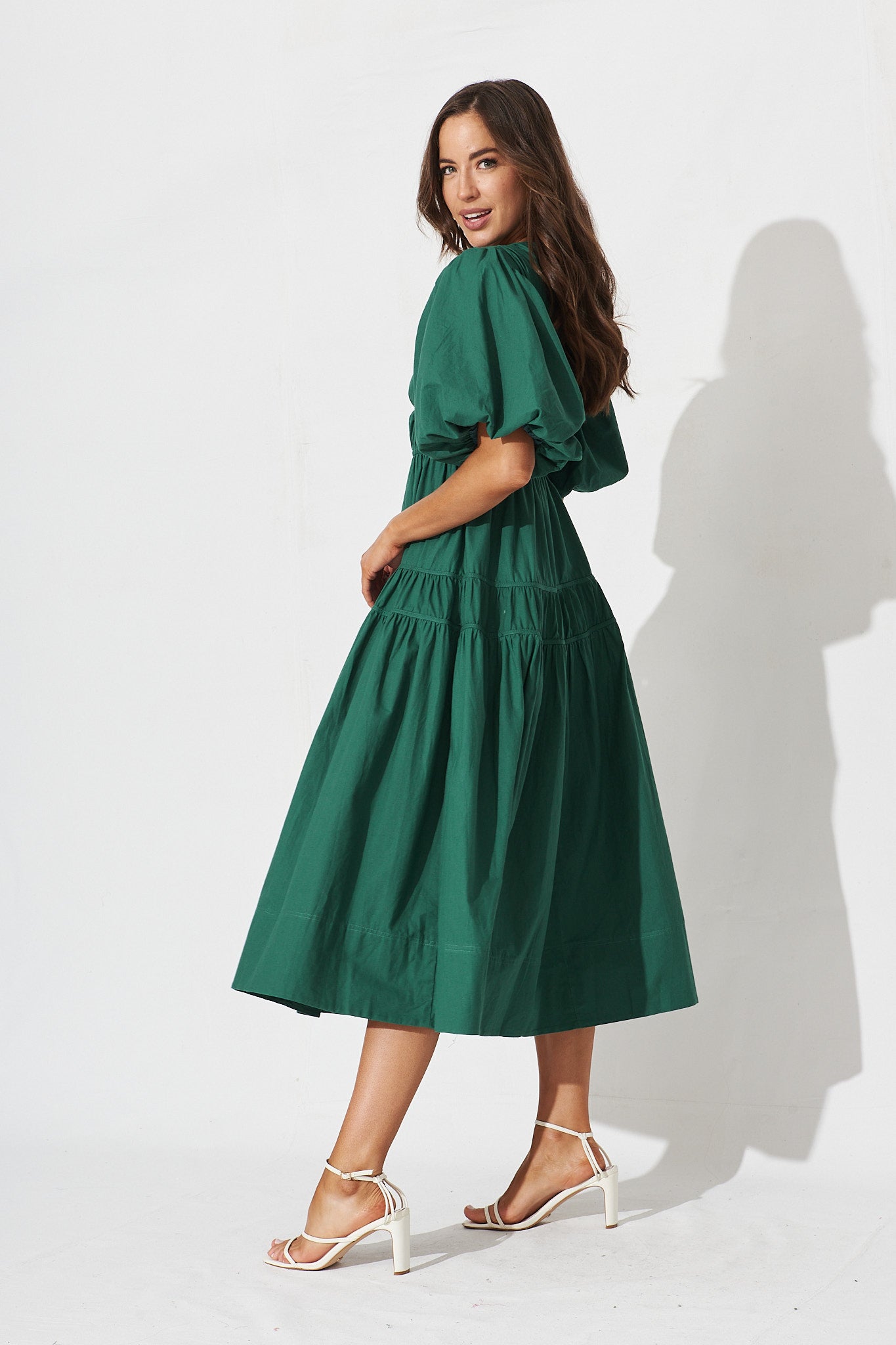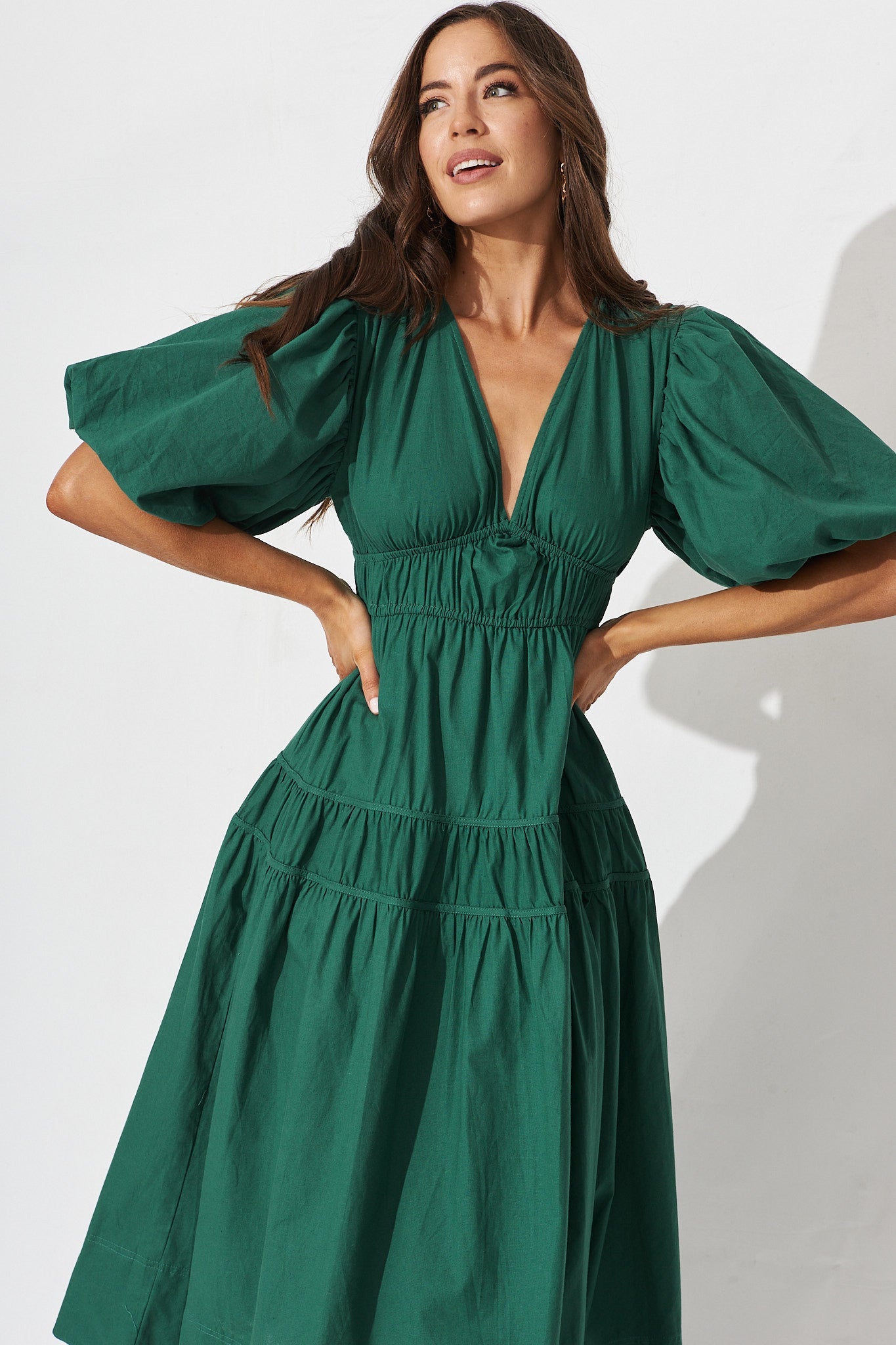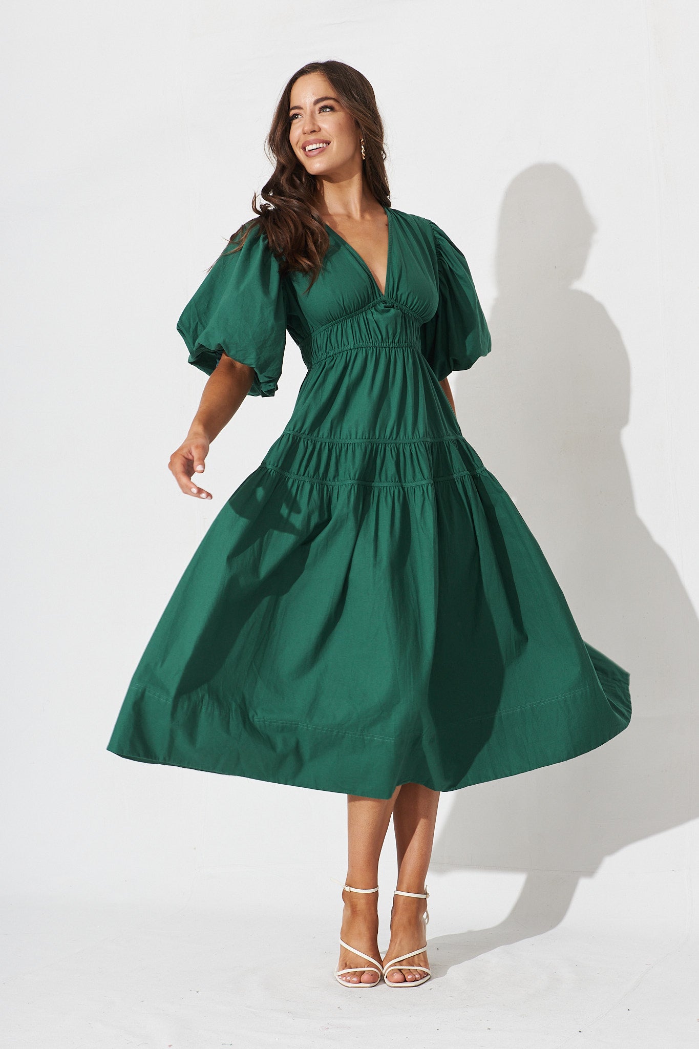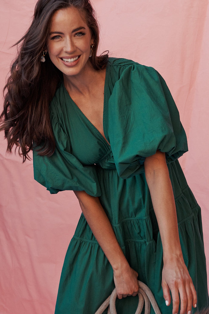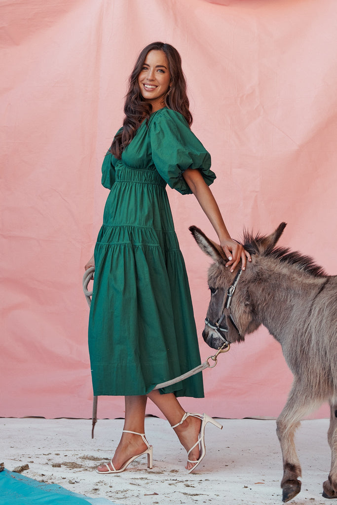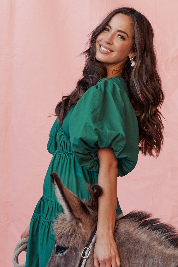 Just think of all the compliments you will get in our stunning Amalie Midi Dress! Cute puff sleeves, tick! Flattering V neckline, tick! Full tiered skirt, tick! This dress will have you instantly ready and out the door for any occassion!