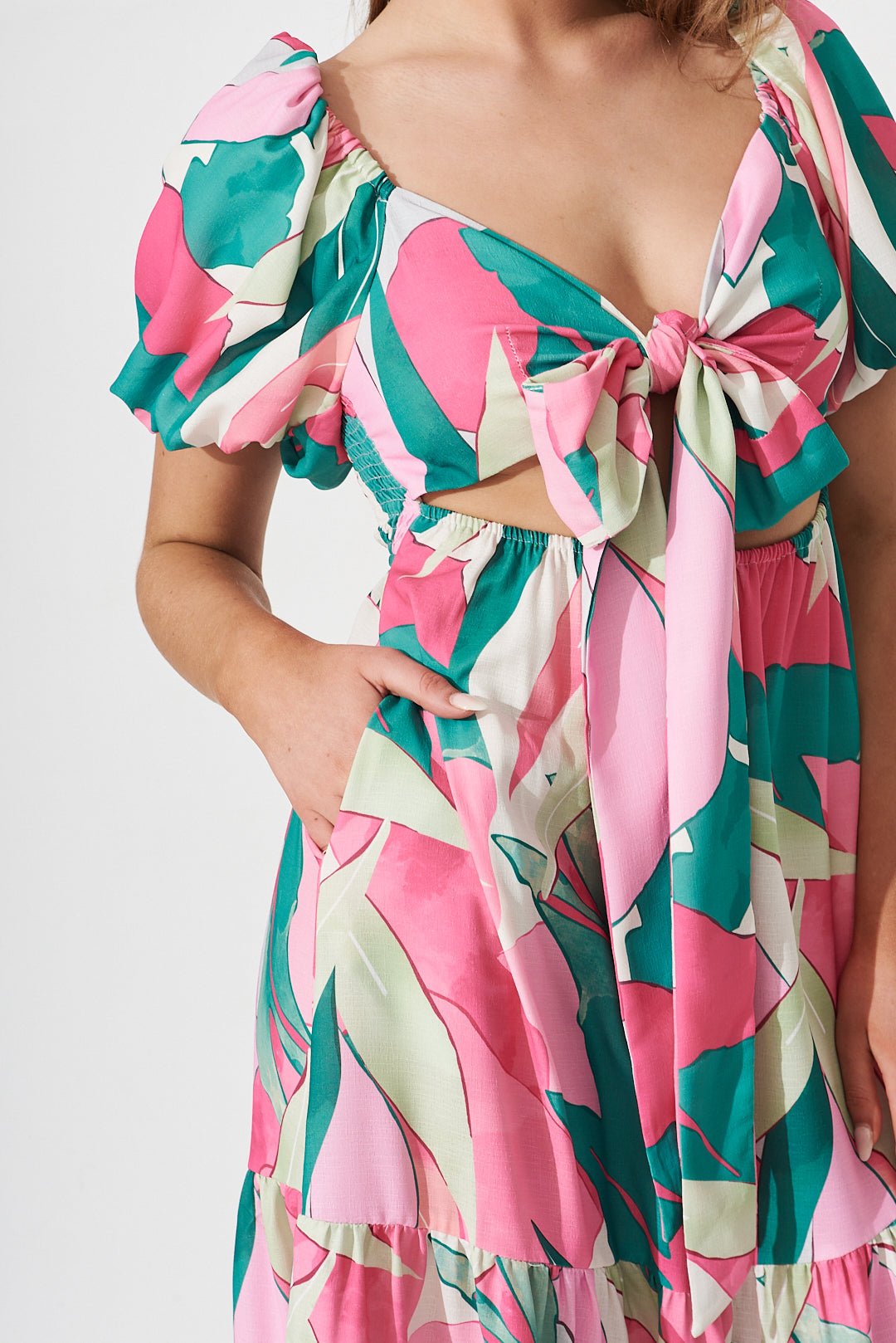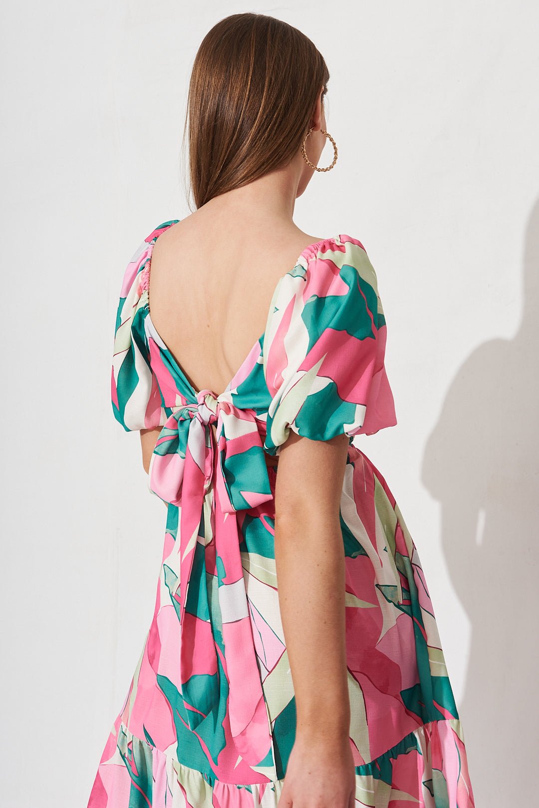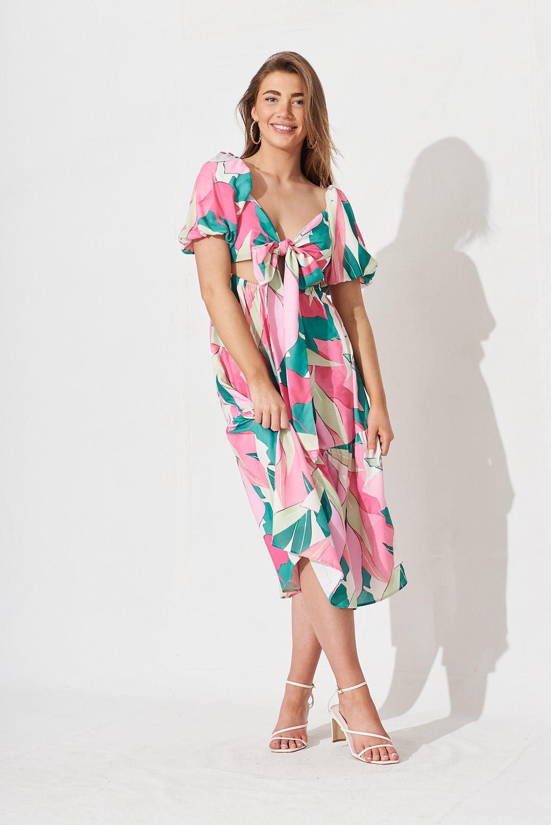 Angelique Multiway Midi Dress In White With Multi Floral Linen Blend