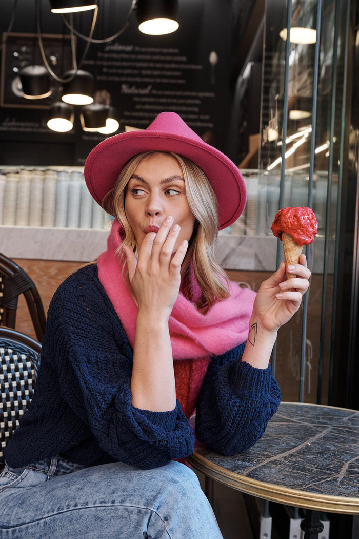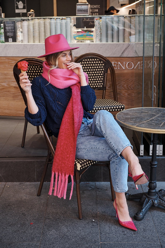 August + Delilah Montpellier Fedora In Hot Pink With Gold Trim