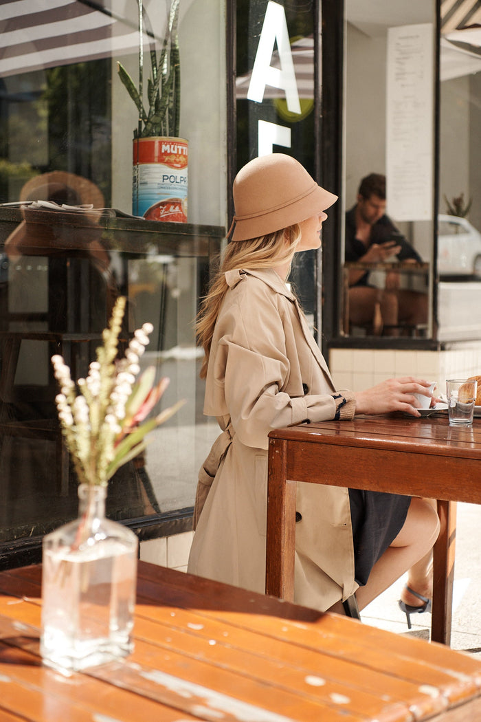 August + Delilah Strasbourg Hat In Light Brown Wool