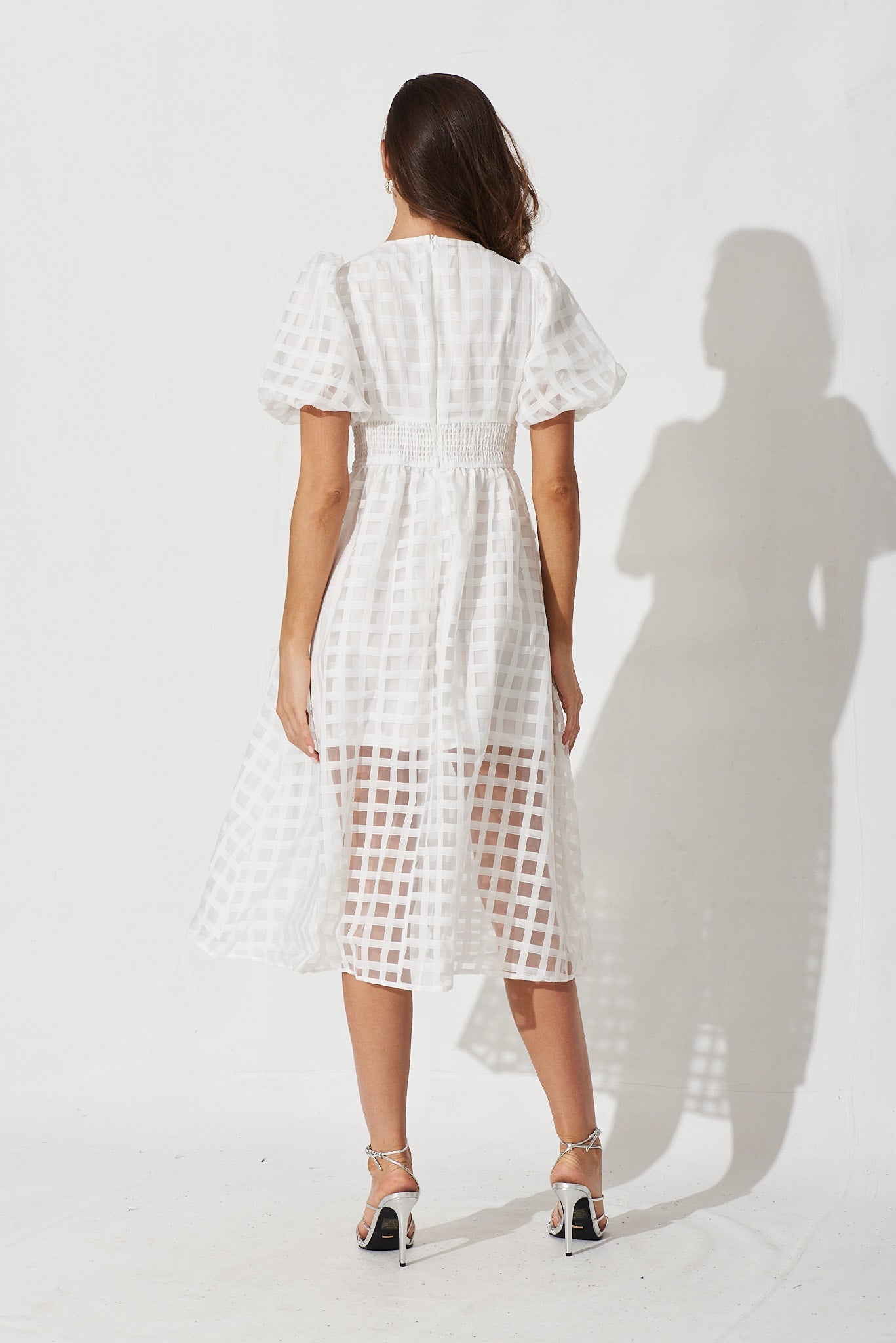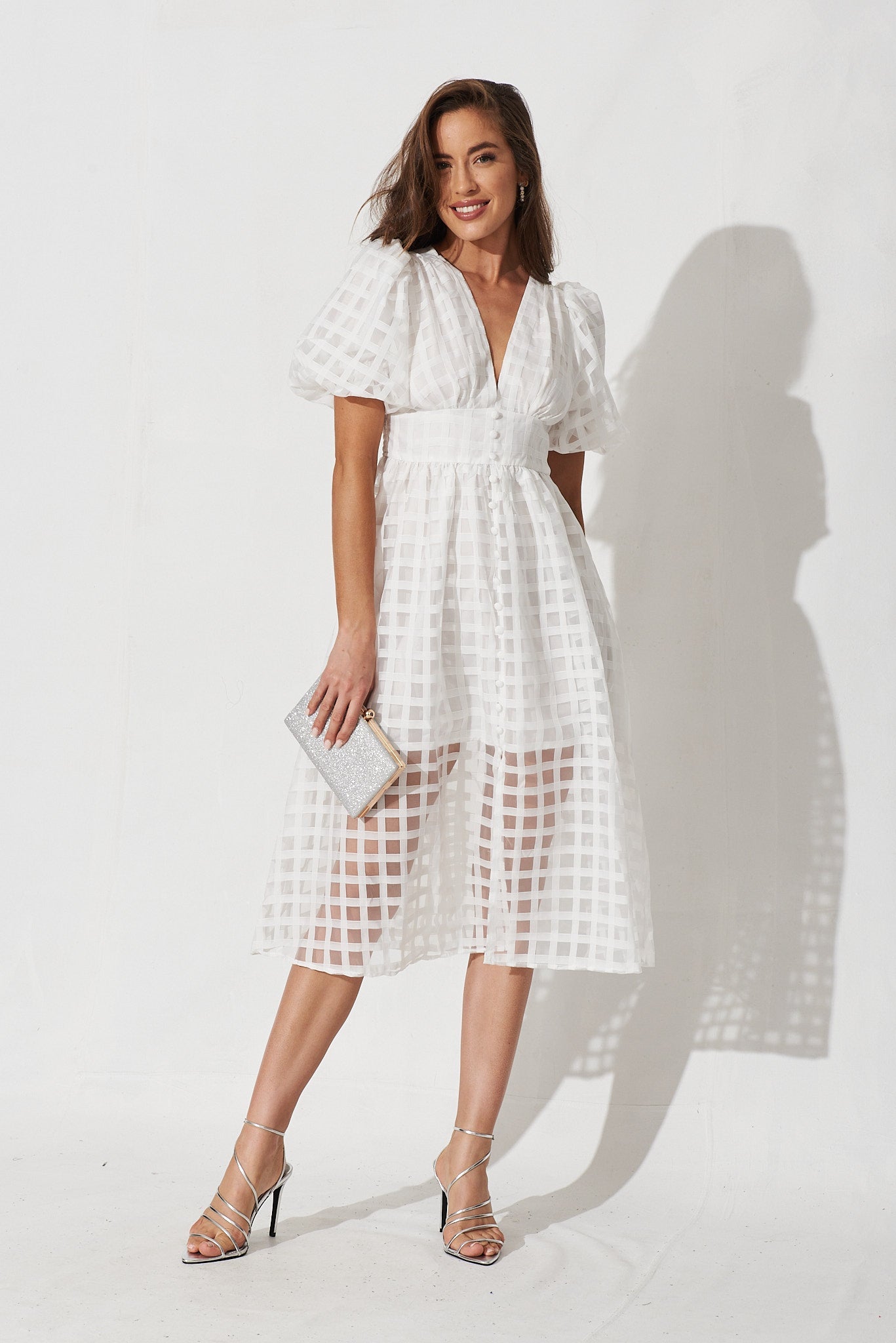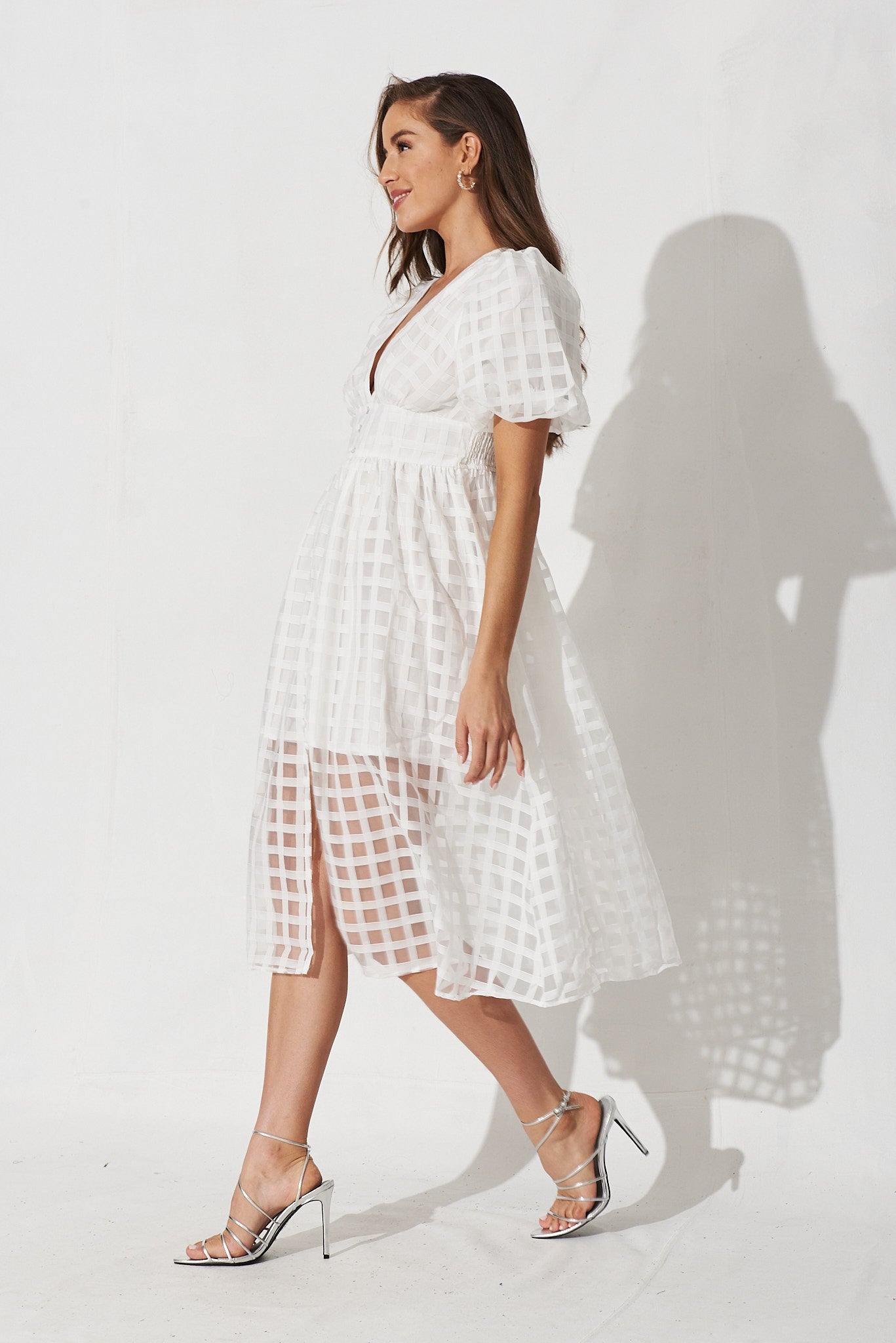 Destiny Midi Dress In White Organza