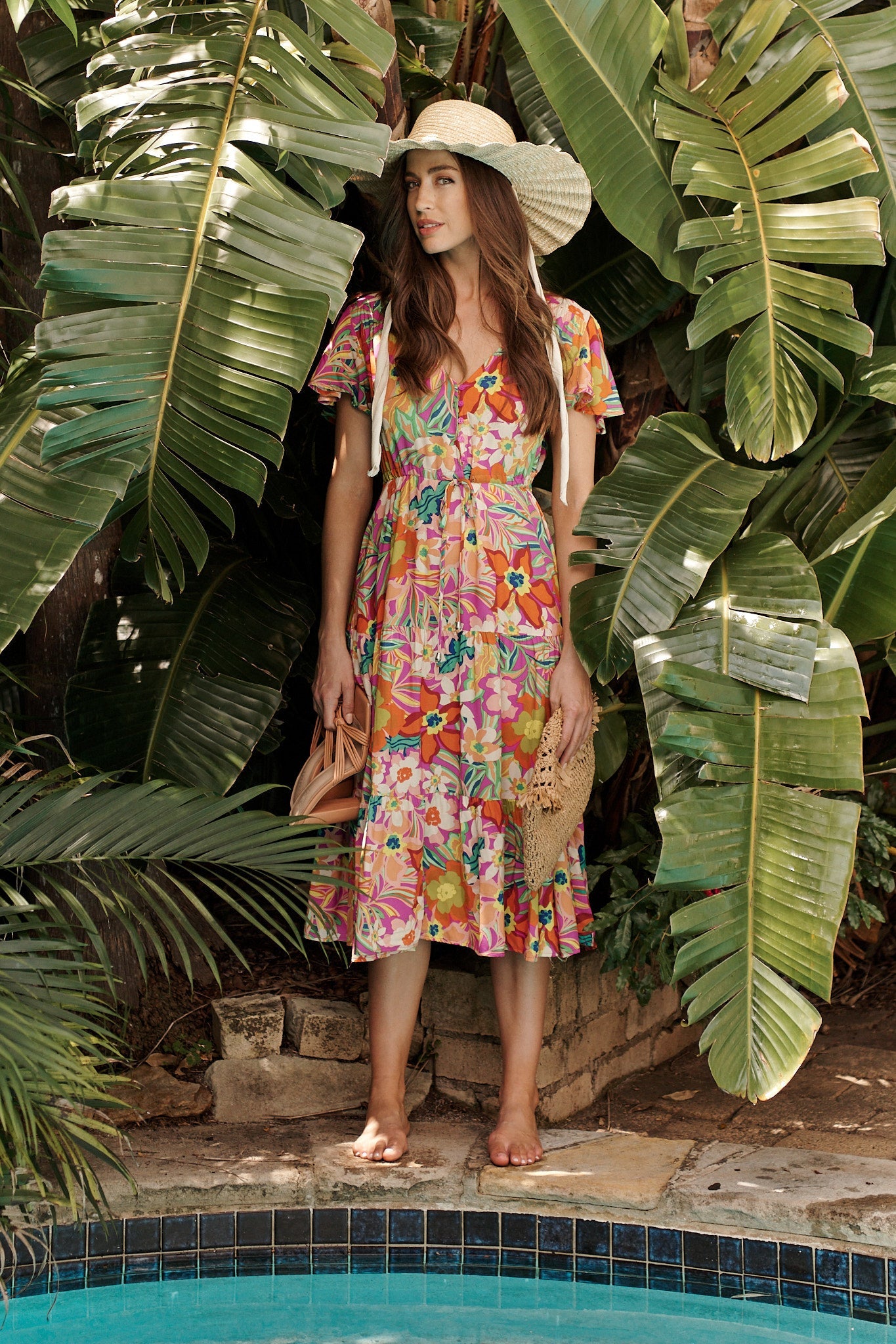 The sweetest midi dress you will find. Our Fonda Midi Dress is the perfect piece for those daytime events coming up. Wear it out to drinks and celebrations alike, complete the look with some heels & a cute clutch.