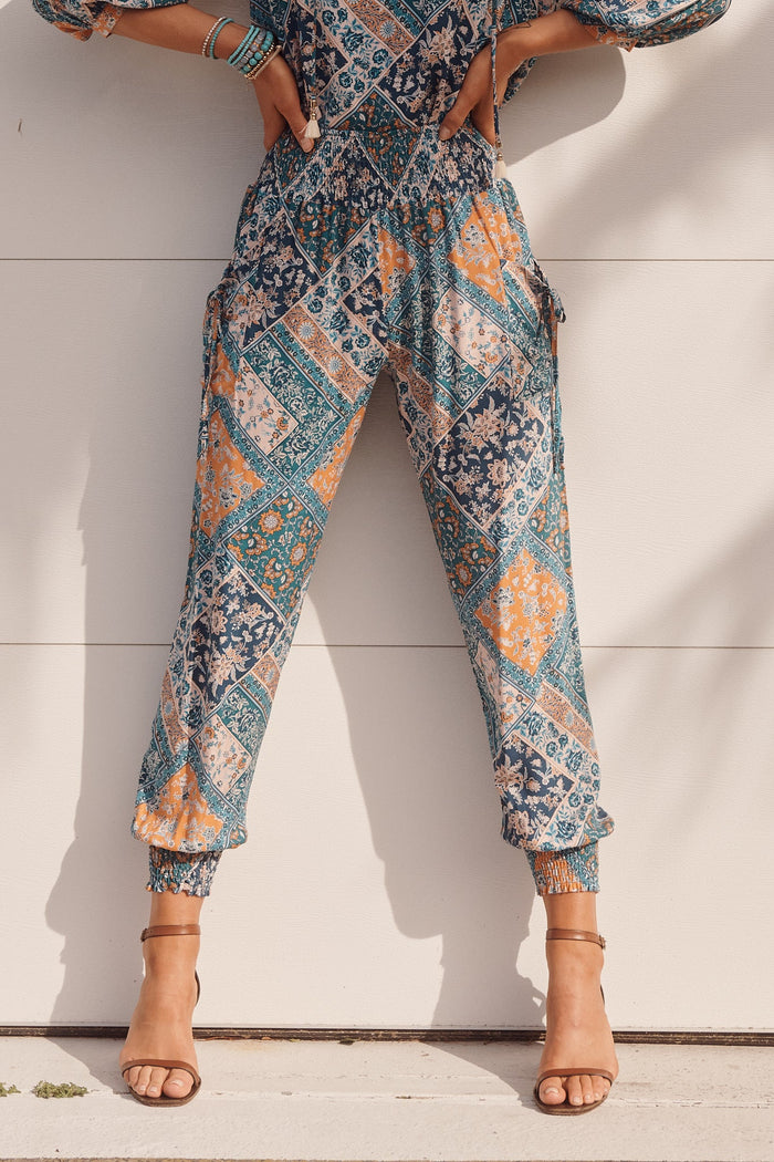 Gabby Lounge Pants In Navy And Blue Tile Print