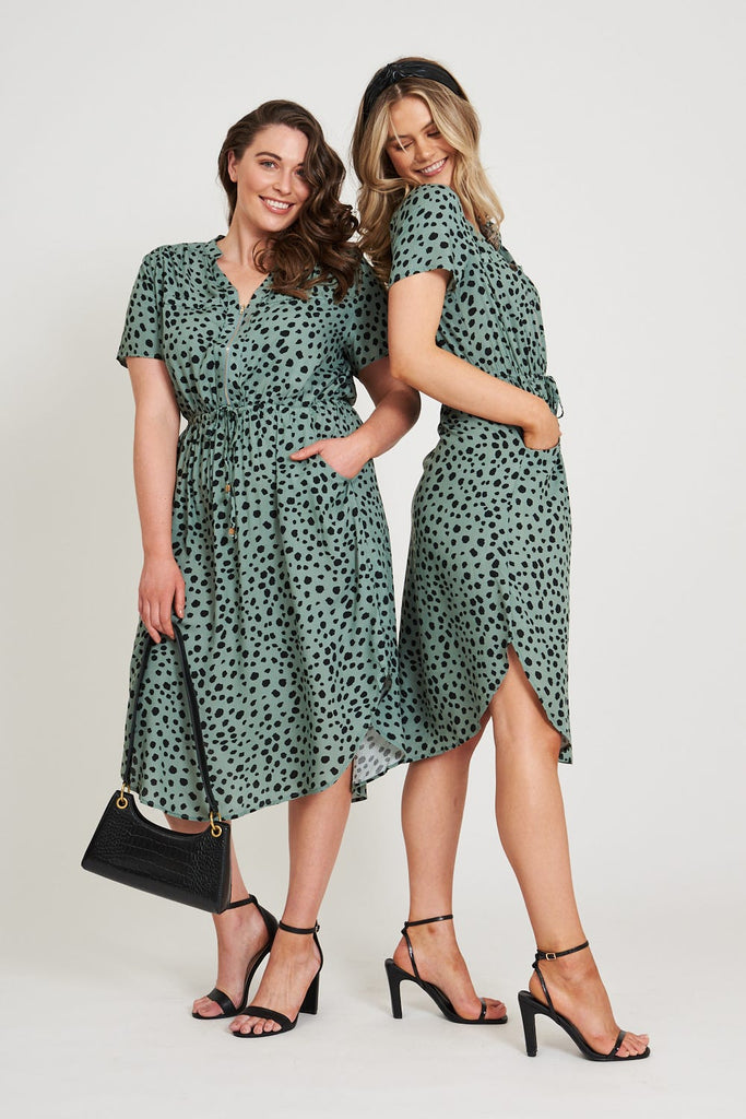 Go Getter Zip Dress In Dusty Green With Black Speckle