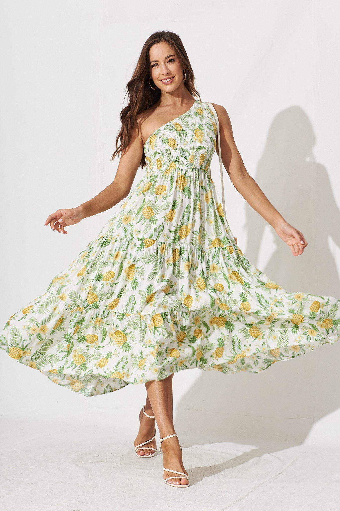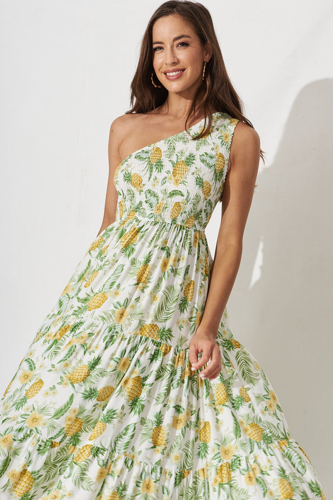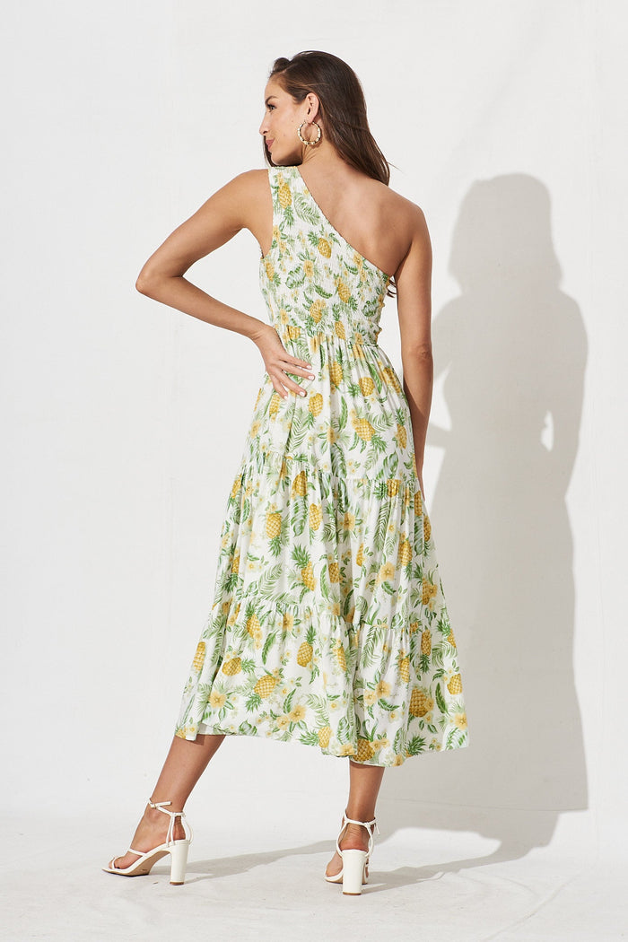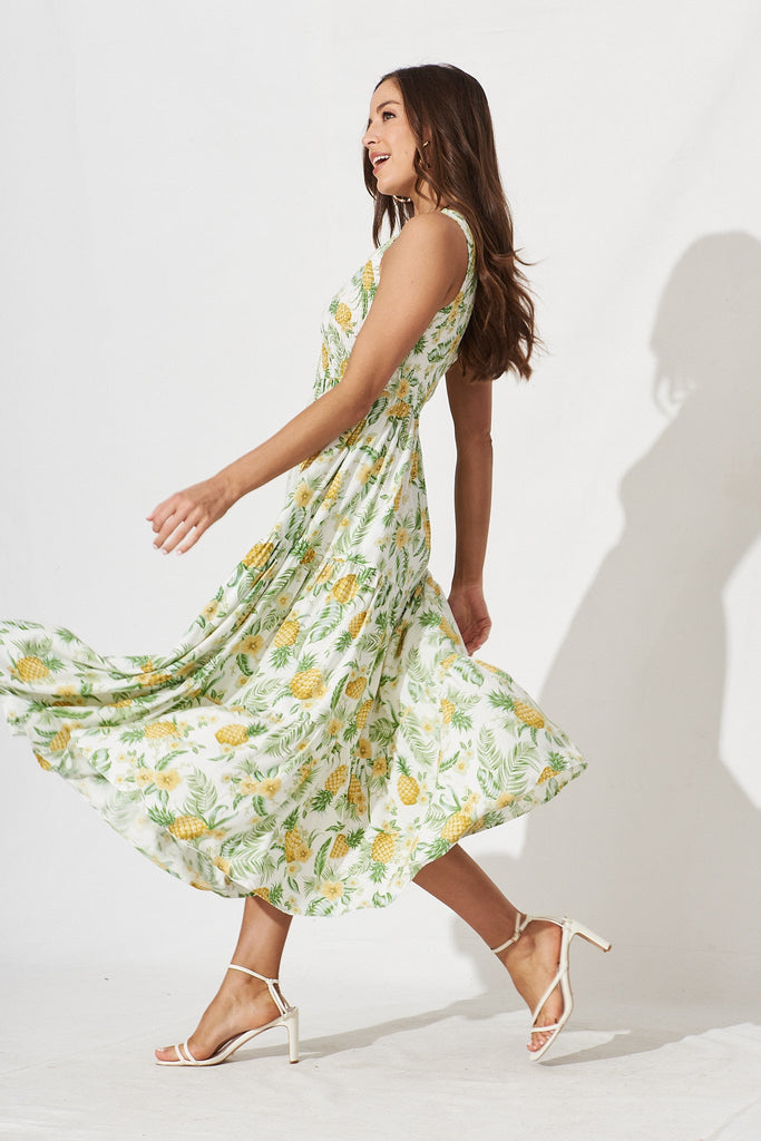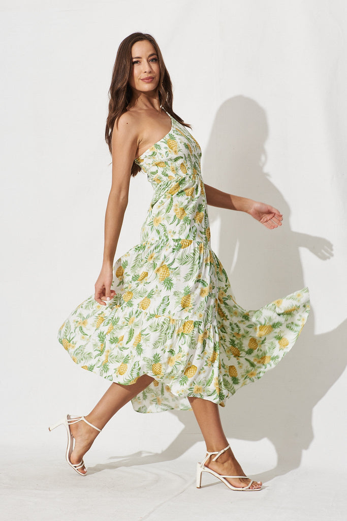 Hannary Midi Dress In White With Yellow Pineapple Print