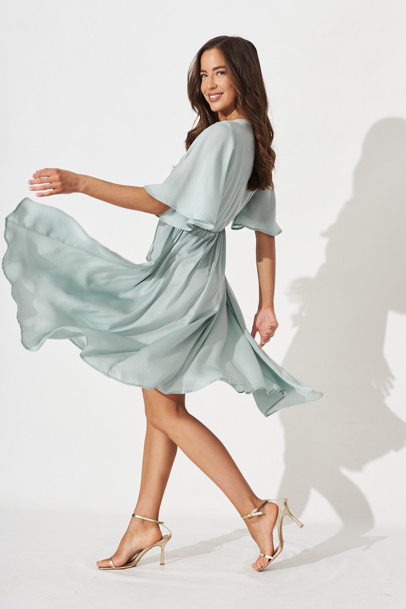 Helsinki Dress In Pale Green Satin