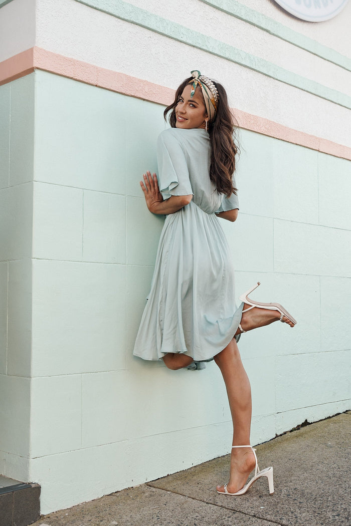 Feel feminine & relaxed in the Helsinki Dress! Featuring a satin-like fabric that flows beautifully & feels so comfortable on the skin, this style features an elasticised waist, fluted hem and front tie detailing. The draped bell sleeves & fluted hem can be perfectly paired with simple heels and pearl earrings for a refined and romantic look!