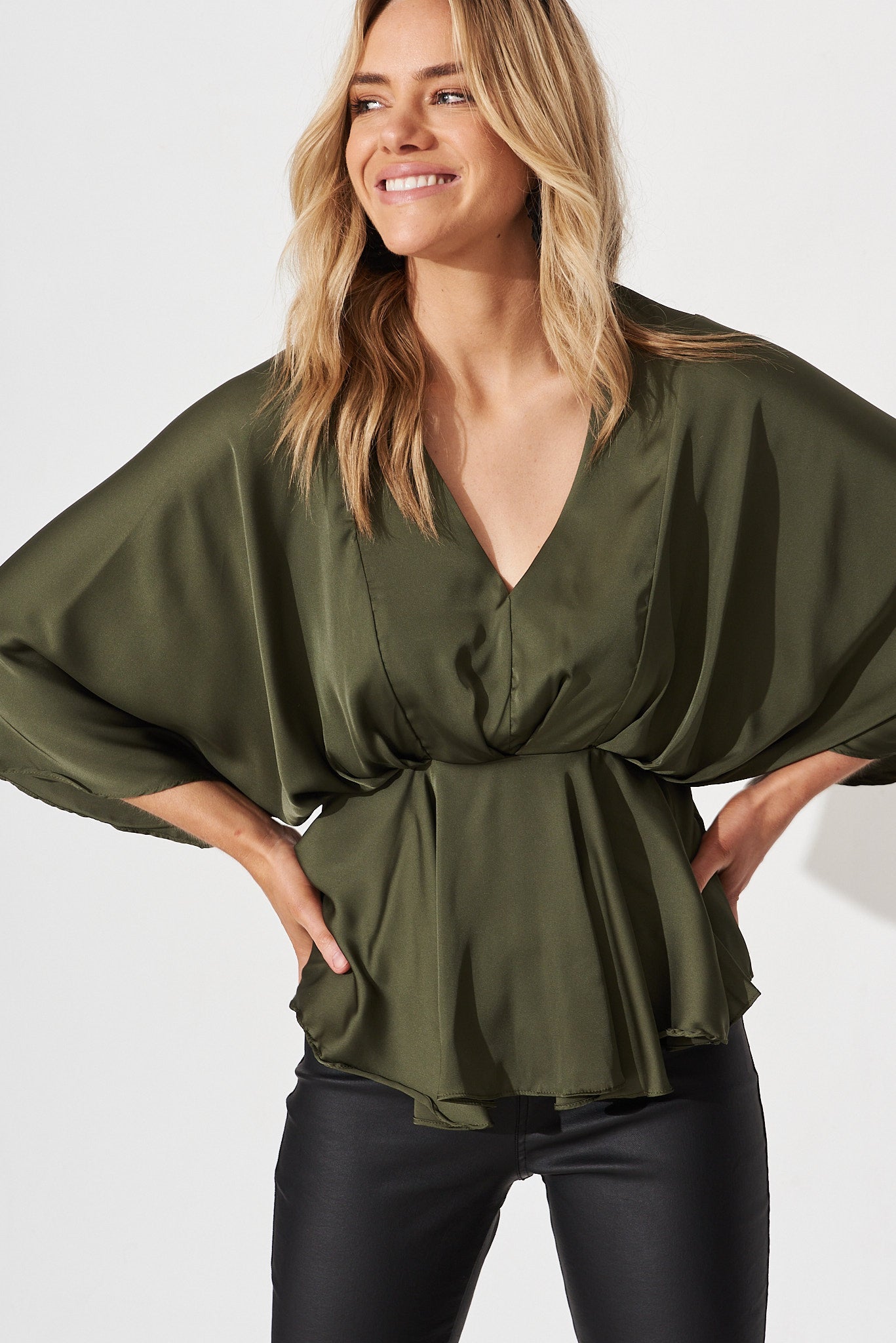 Our Hillary Top oozes floaty femininity & effortless style with its kimono-style silhouette & soft pleated fabric. We love this styled back with leather look pants.