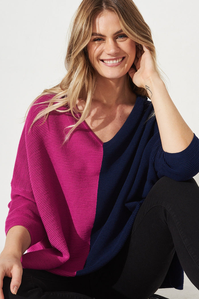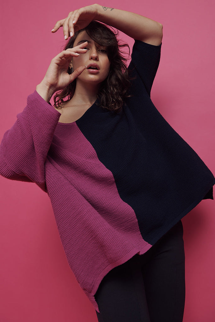Get ready to get cosy in our Mandie Colourblock Knit! This knit works perfectly for those cooler nights out as well as daytime adventures. Wear with your favourite blue jeans to nail your weekend wardrobe.