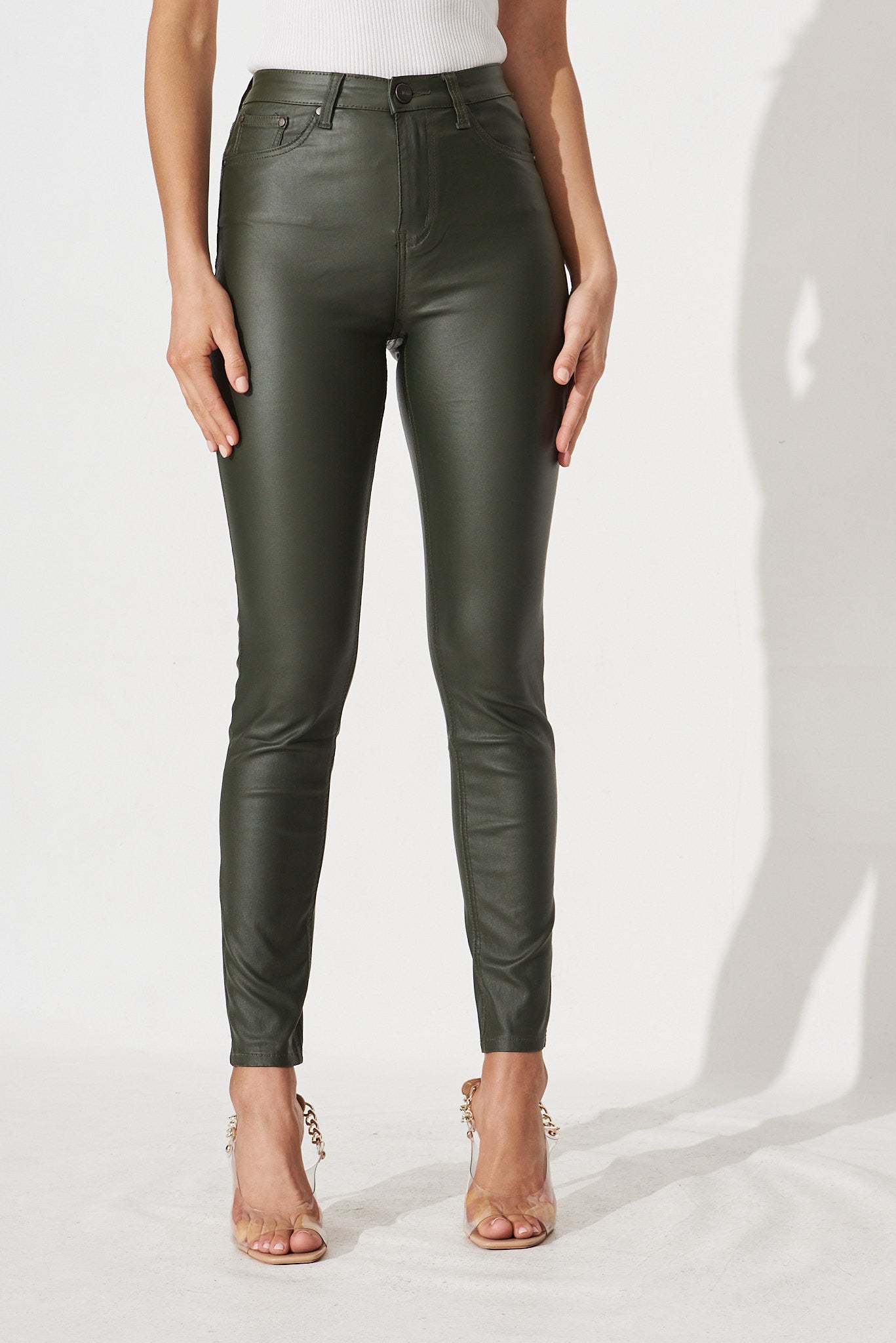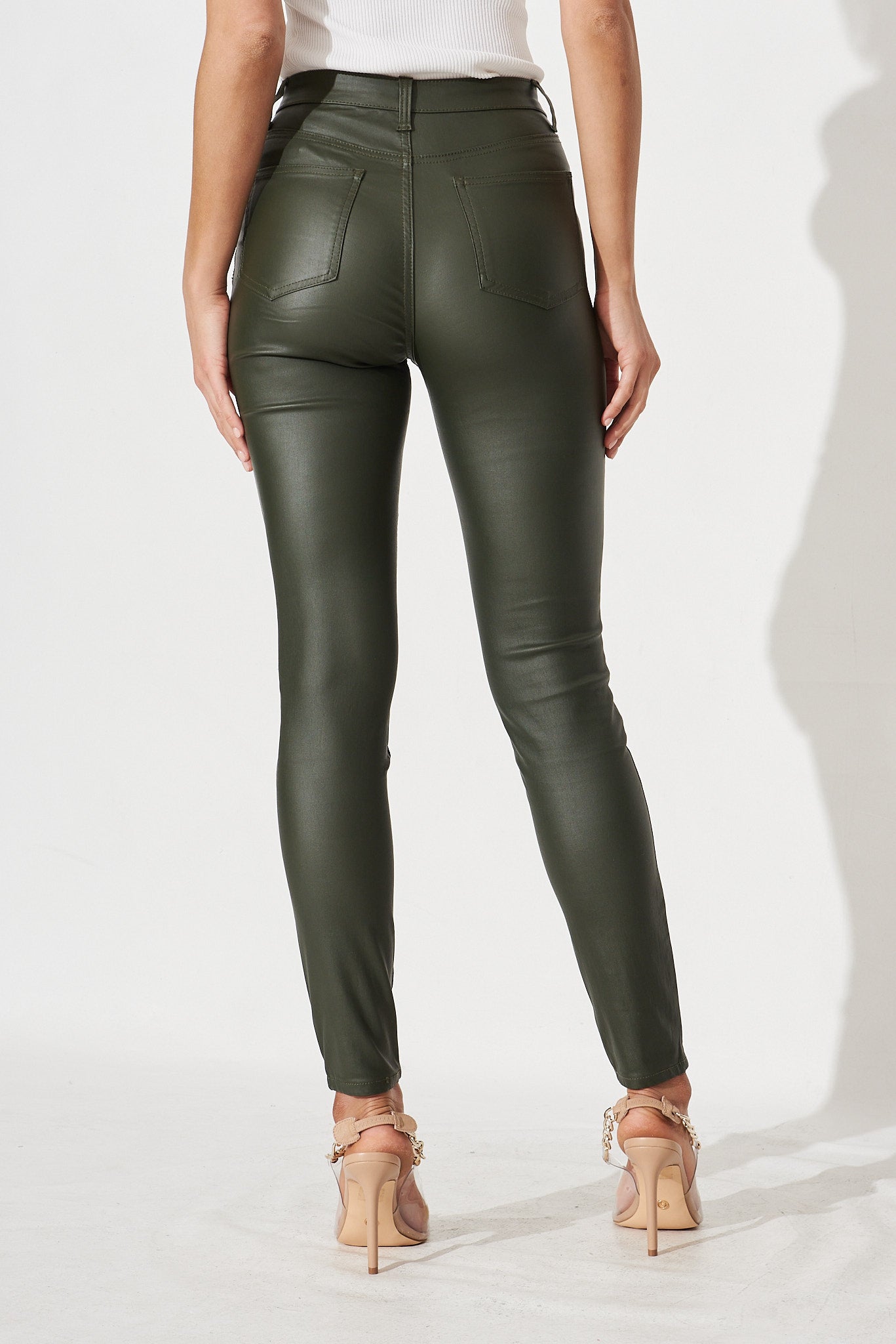 Merley Skinny Pants In Olive Leatherette