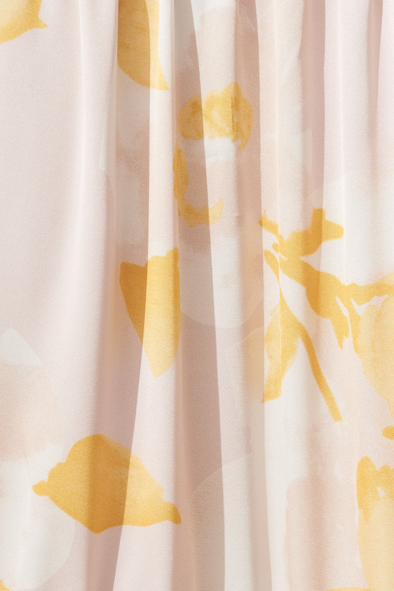 Nadine Maxi Dress In Beige With Yellow Print Satin