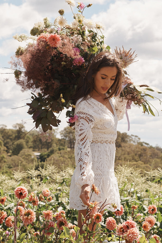 Our Norelle Lace Dress should be top of your list for the next special occasion! Featuring a fit & flare silhouette with a dreamy long lace sleeve, & ruffle lace hem on the skirt. Style this one to perfection for your next special event with pretty accessories, & strappy heels.