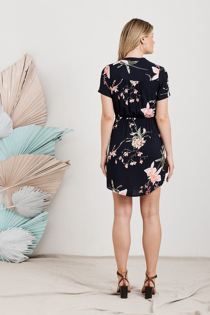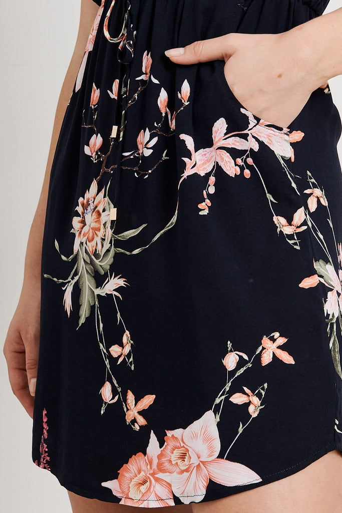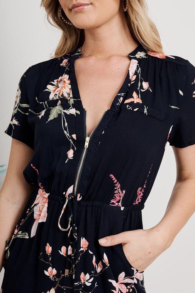 Now Or Never Zip Dress In Navy With Apricot Floral