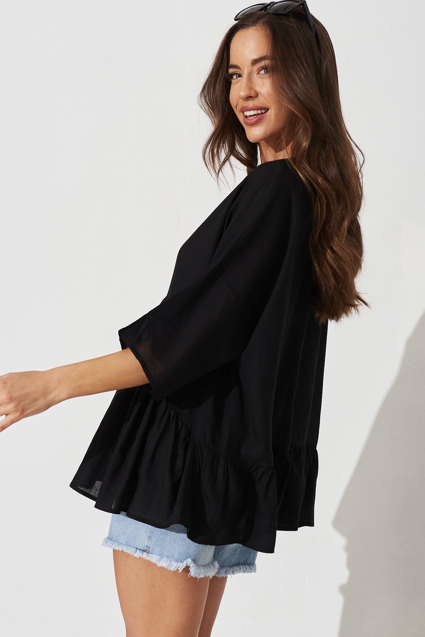 With its modern frills and textured detail, Our Piana Top takes you from desk to dinner with ease. Made from linen, the figure-flattering design features a high-low hemline and classic v-neckline neck. Coordinate yours with everything from pencil skirts to skinny jeans for a relaxed but confident look.