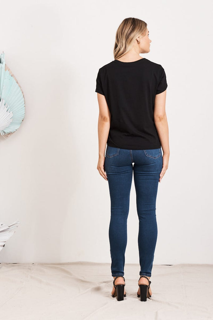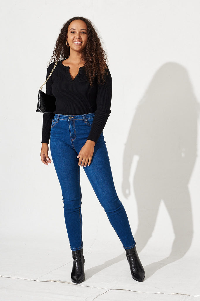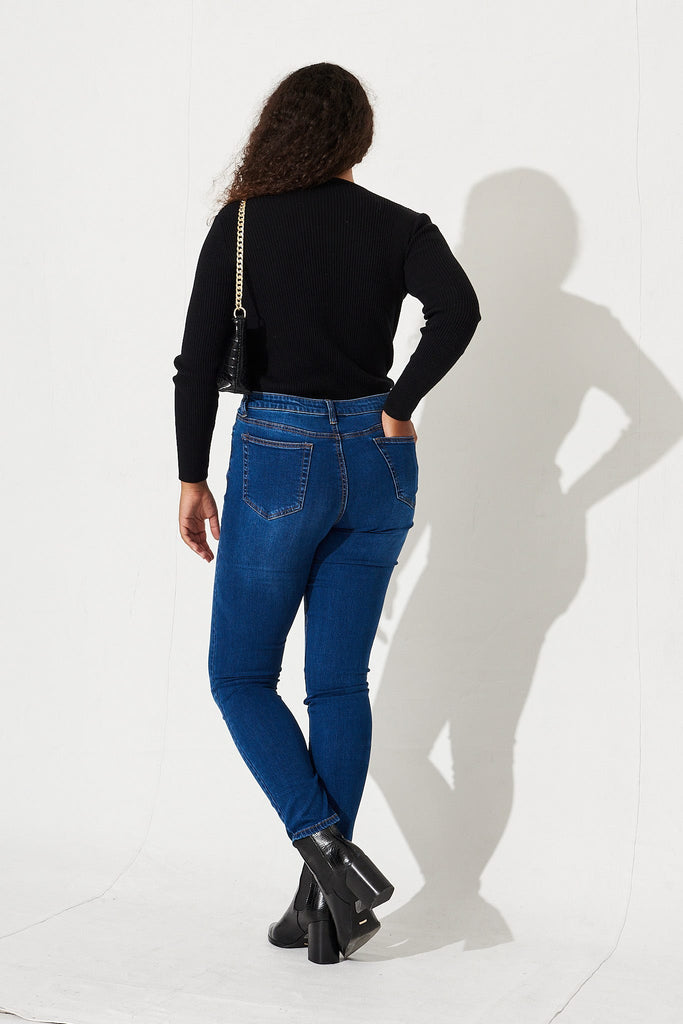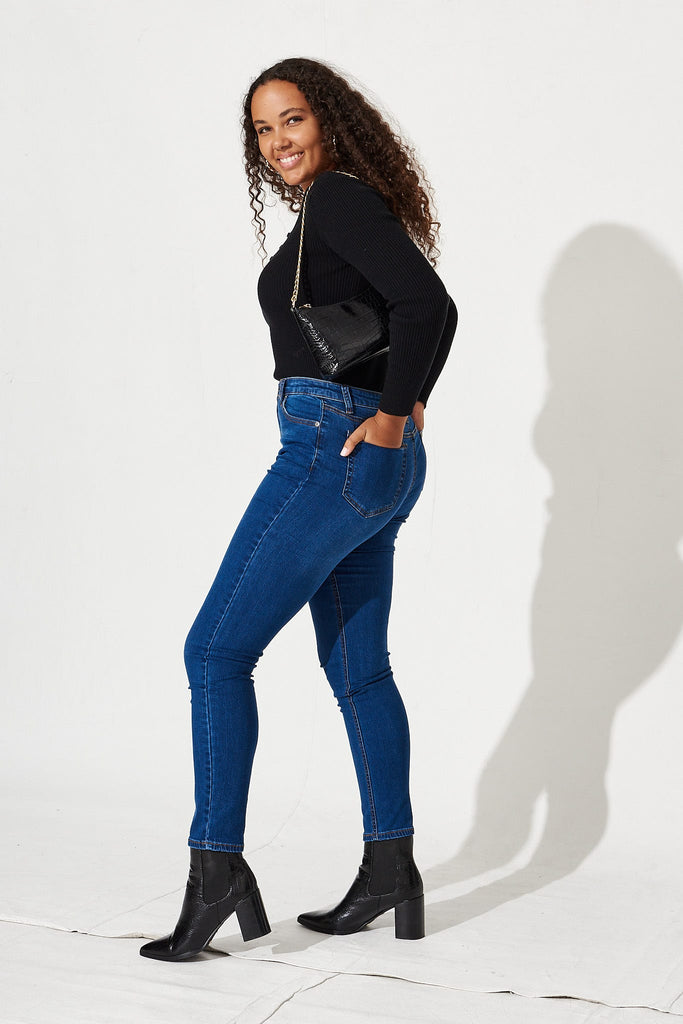Meet the Piper High Rise Jeans in Dark Blue, your ticket to a easy & effortless everyday style! Their flattering high-waist & skinny-leg is cut from a super-stretch fabric, so it adjusts seamlessly to your shape. These jeans are an office favourite - amazingly flattering & comfy on all shapes & sizes!
