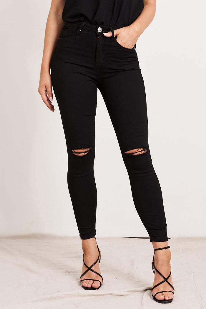 Meet the Piper High Rise Ripped Jeans in Black, your ticket to a easy & effortless everyday style! Their flattering high-waist & skinny-leg is cut from a super-stretch fabric, so it adjusts seamlessly to your shape. These jeans are an office favourite - amazingly flattering & comfy on all shapes & sizes!