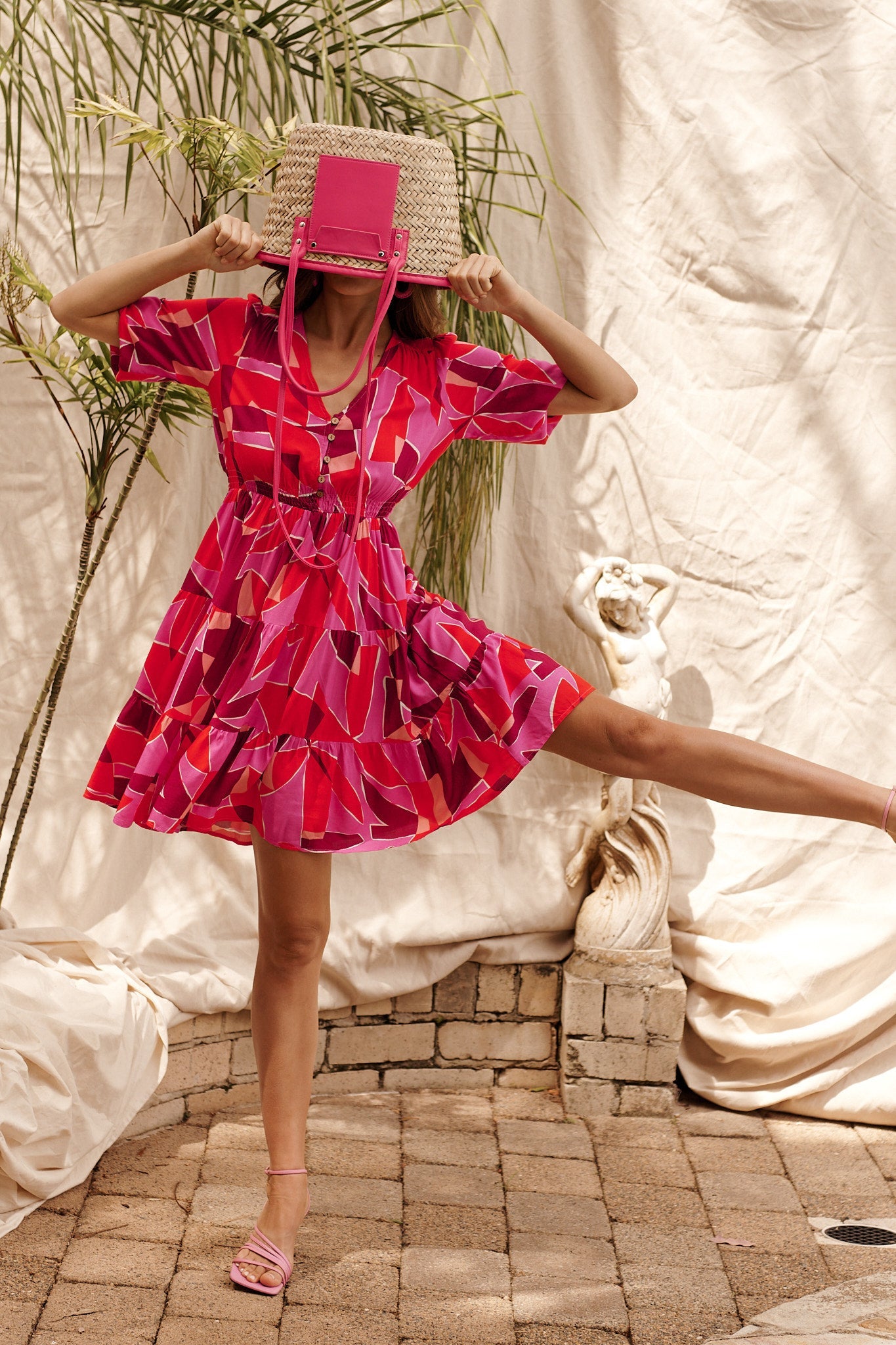 Our Reign Dress will take your breath away! Flattering for all body shapes, this dress is super comfy with its tiered, smock-style body & Elasticised waist. Style this with strappy heels or your sandals & sunnies for the perfect daytime look.