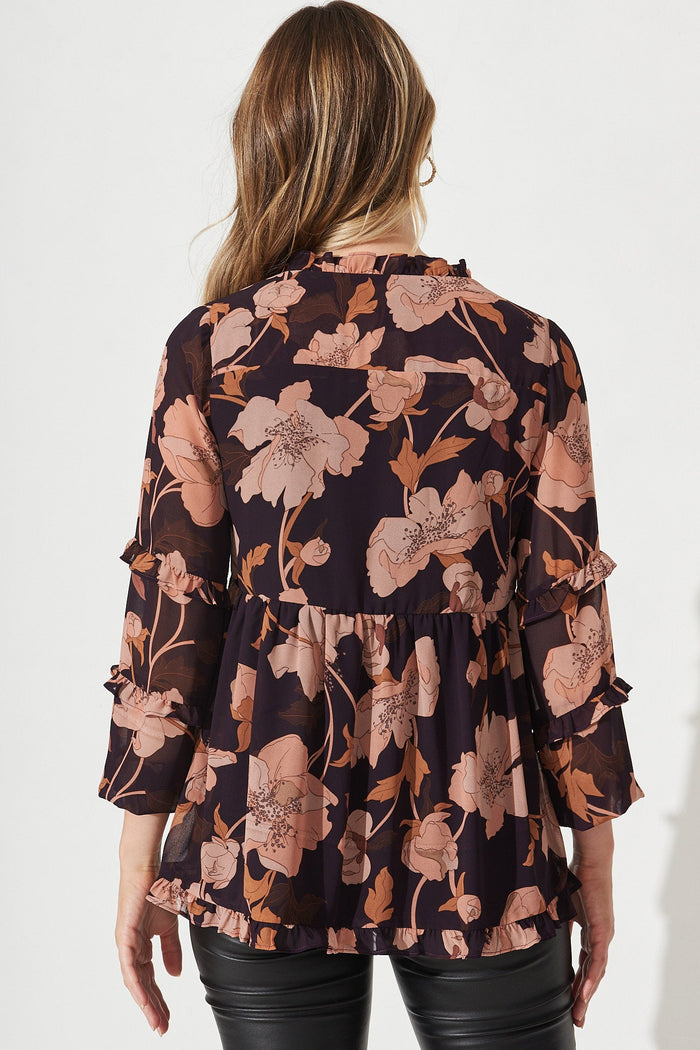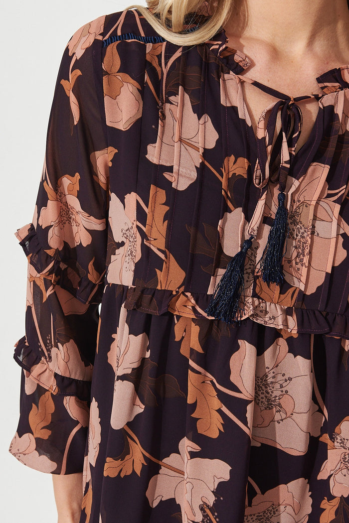 Ricci Smock Top In Navy With Blush Floral Chiffon