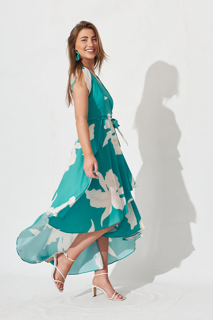 Our Savannah Dress will make you feel effortlessly beautiful. Featuring a floaty high low hem, & waist tie to cinch you in, in all the right places & make your next special event one to remember! Style it with gold strappy heels and clutch to match.
