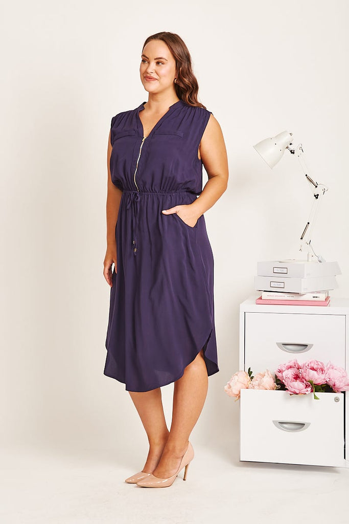 The Shire Dress in Navy is the perfect piece for your everyday wardrobe. This design is cut in a fit and flare shape that is perfect for work, wines and weekends alike! Take yours from desk to dinner by adding strappy heels and a statement lip.