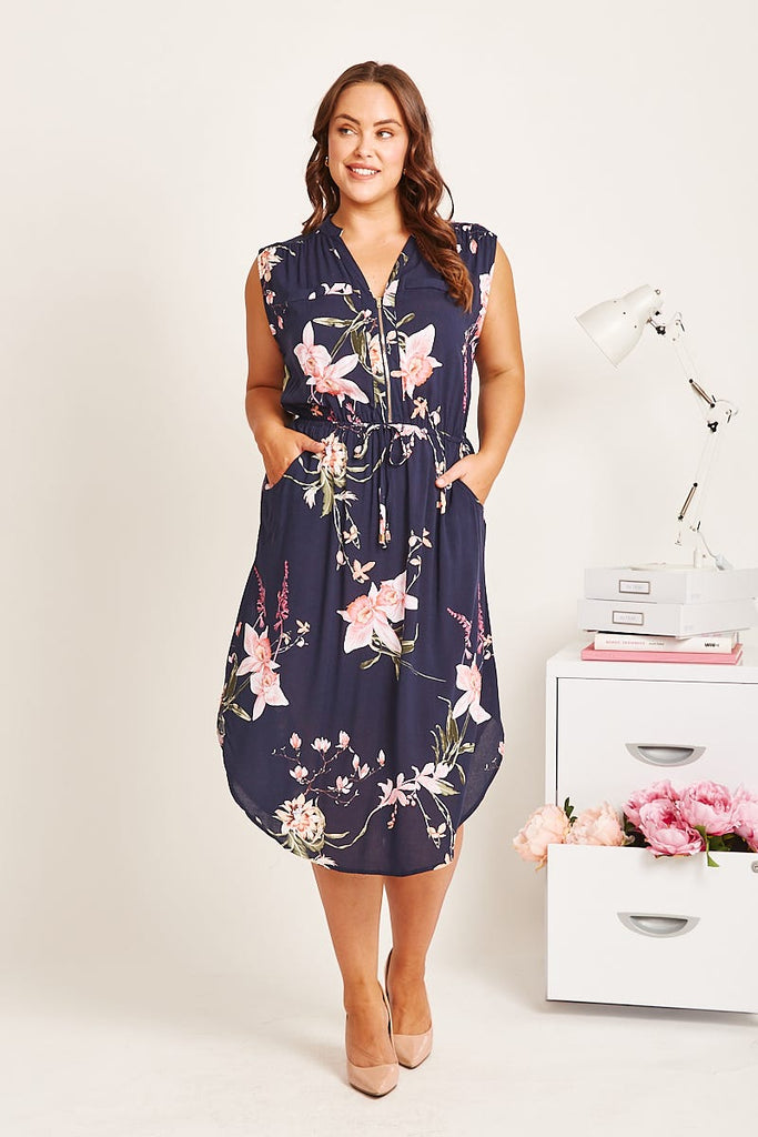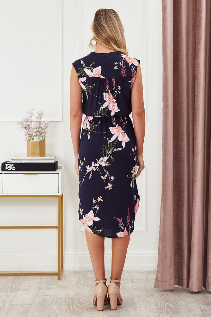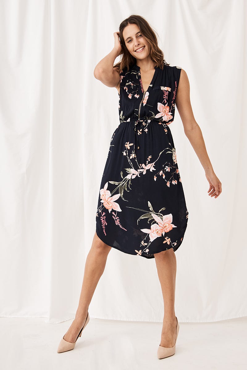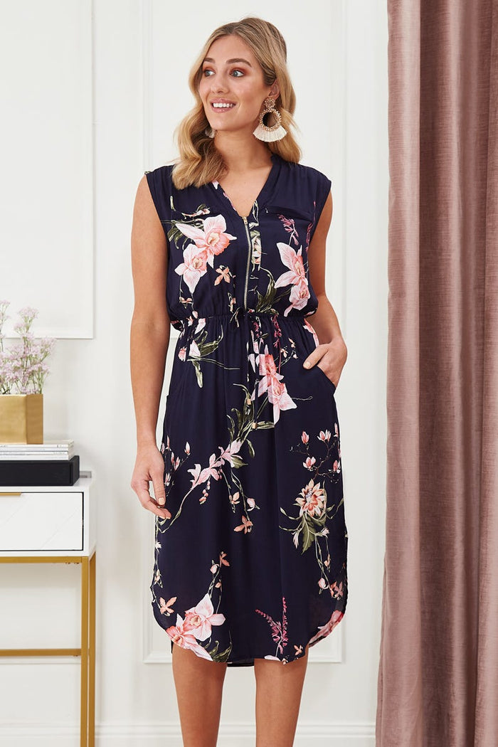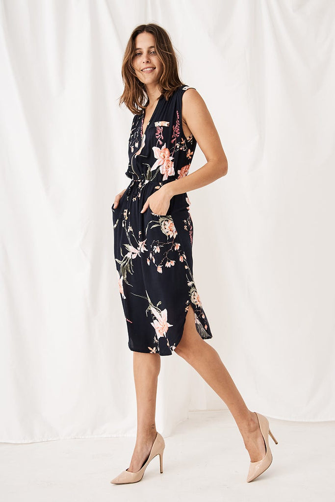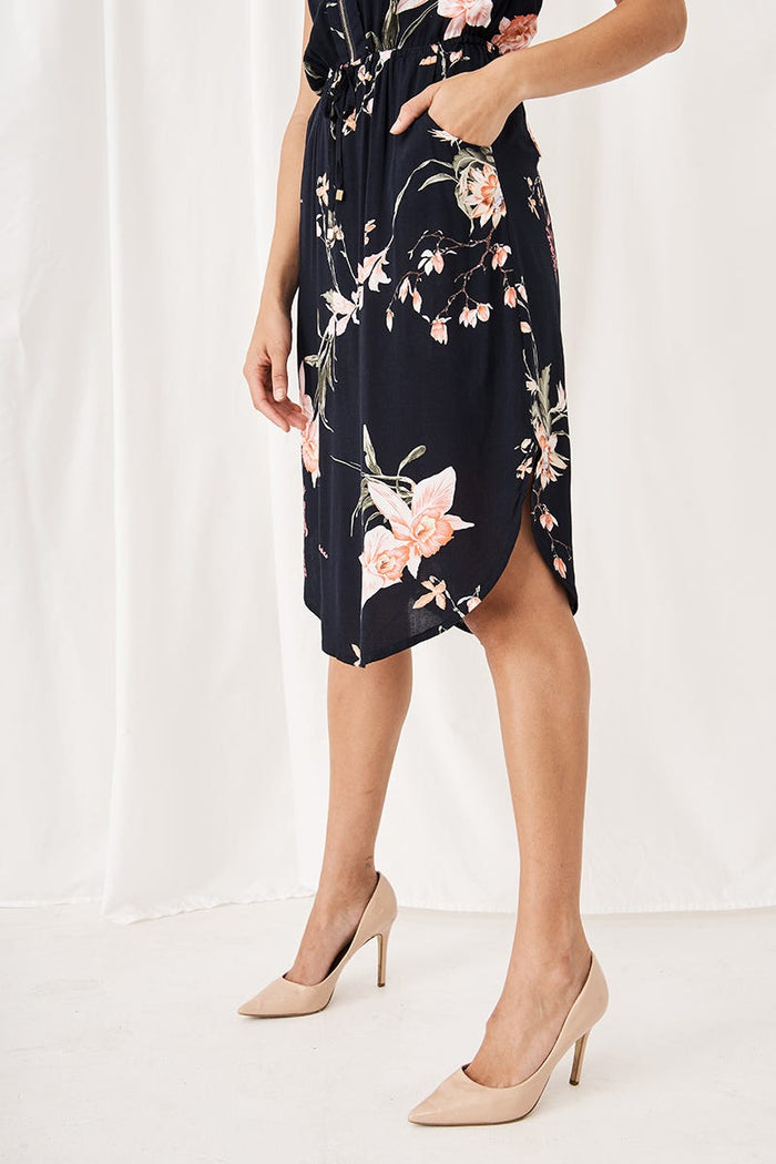 The Shire Dress in Navy with Apricot Floral is a perfect throw-on-and-go style!