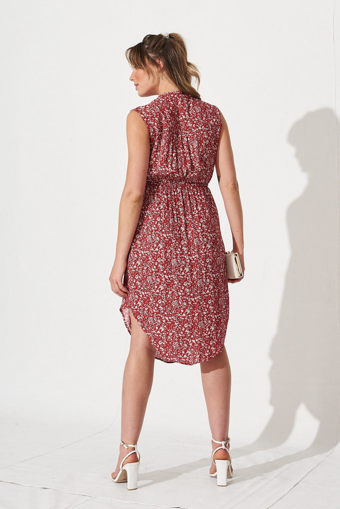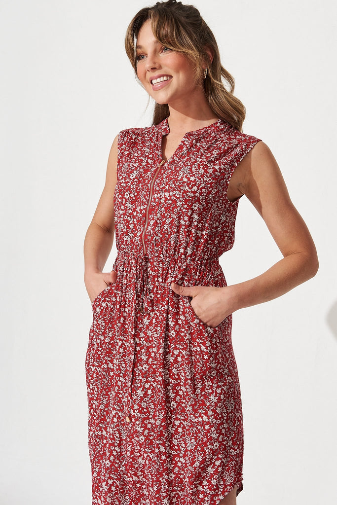 Shire Zip Dress In Red With White Ditsy Floral