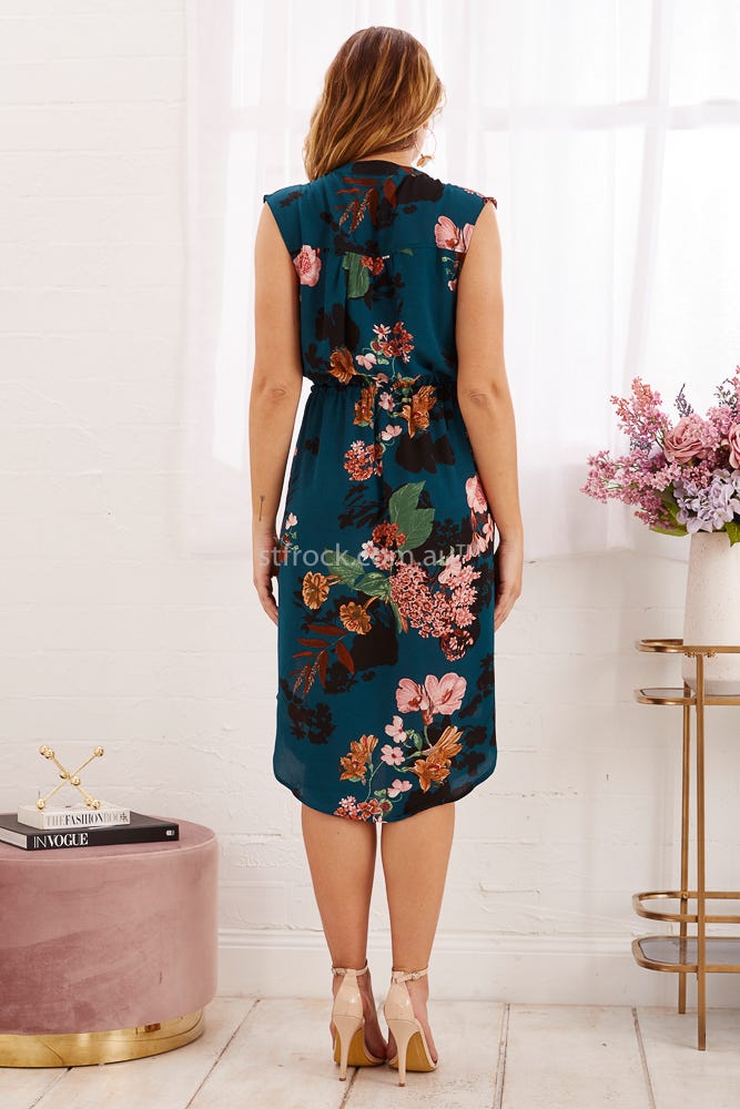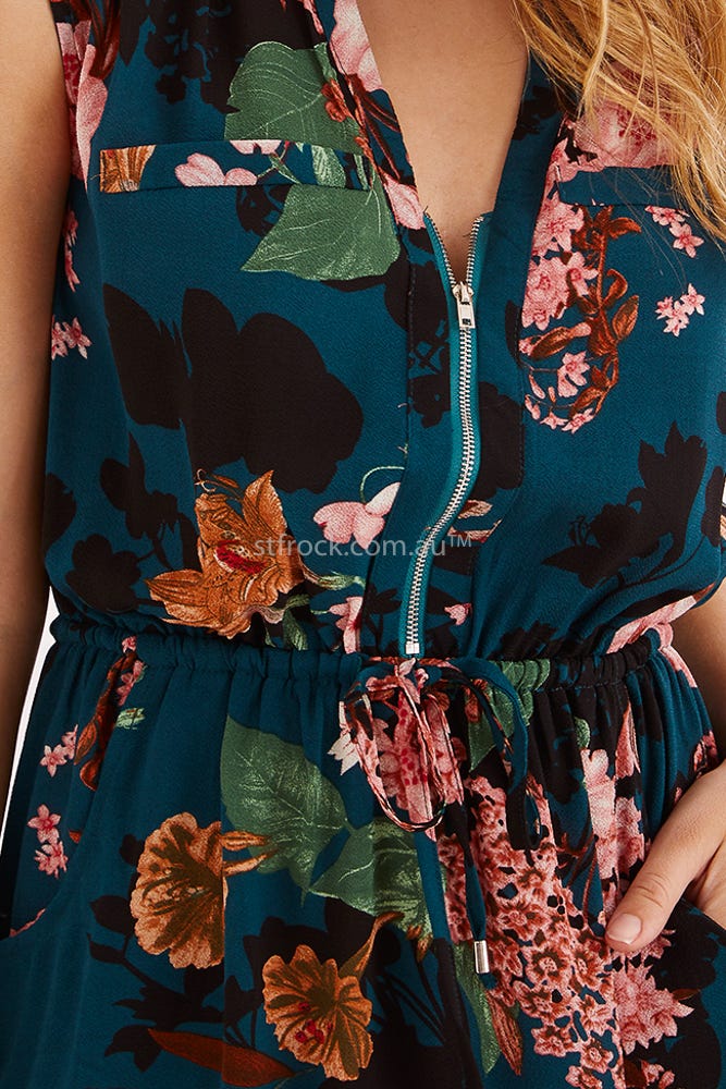 Shire Zip Dress In Teal With Pink And Black Floral