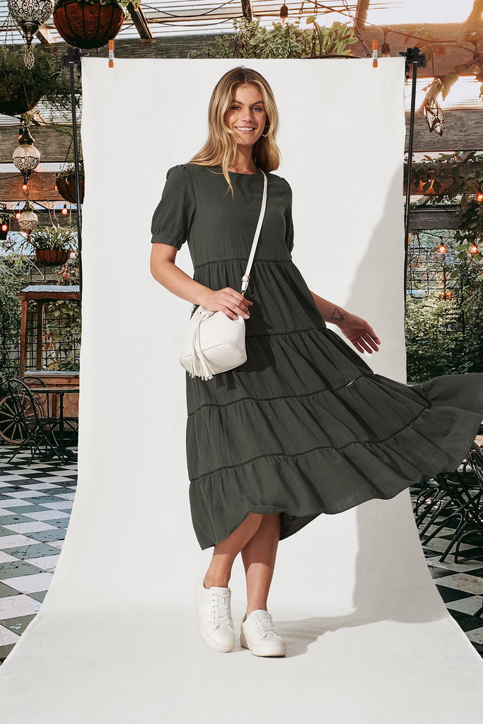 It's the perfect wear-me-anywhere midi! Our Shonda Midi Dress can be dressed up or down, whatever the occasion! Wear yours with leather sandals for an elegant but easy outfit.