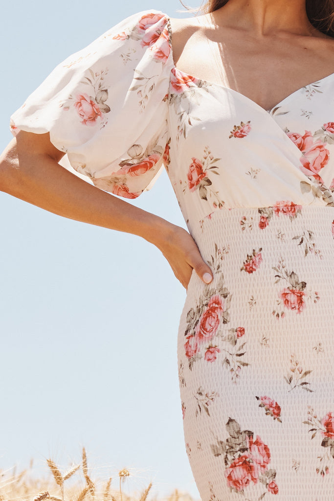 Be the best dressed guest at your next special occasion in our Shoreline Midi Dress! This dress is a fit and flatter style & is finished with a stunning voluminous puff sleeve that can be worn on or off the shoulder. Pair yours with nude heels & statement earrings.