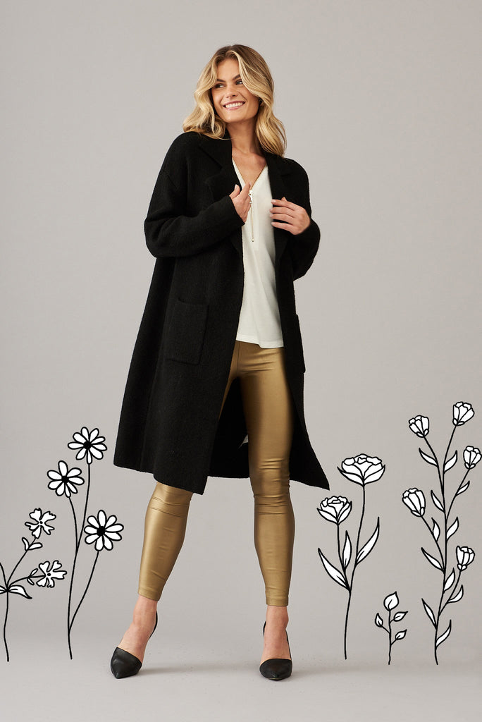Is it a coat? Is it a cardigan? Our St Ives Coatigan is the perfect fusion of both! Coat-y enough to feel warm and snug, but made with a lighter fabric to make your winter layering a breeze! For those extra chilly days, add a chunky scarf and ankle boots!