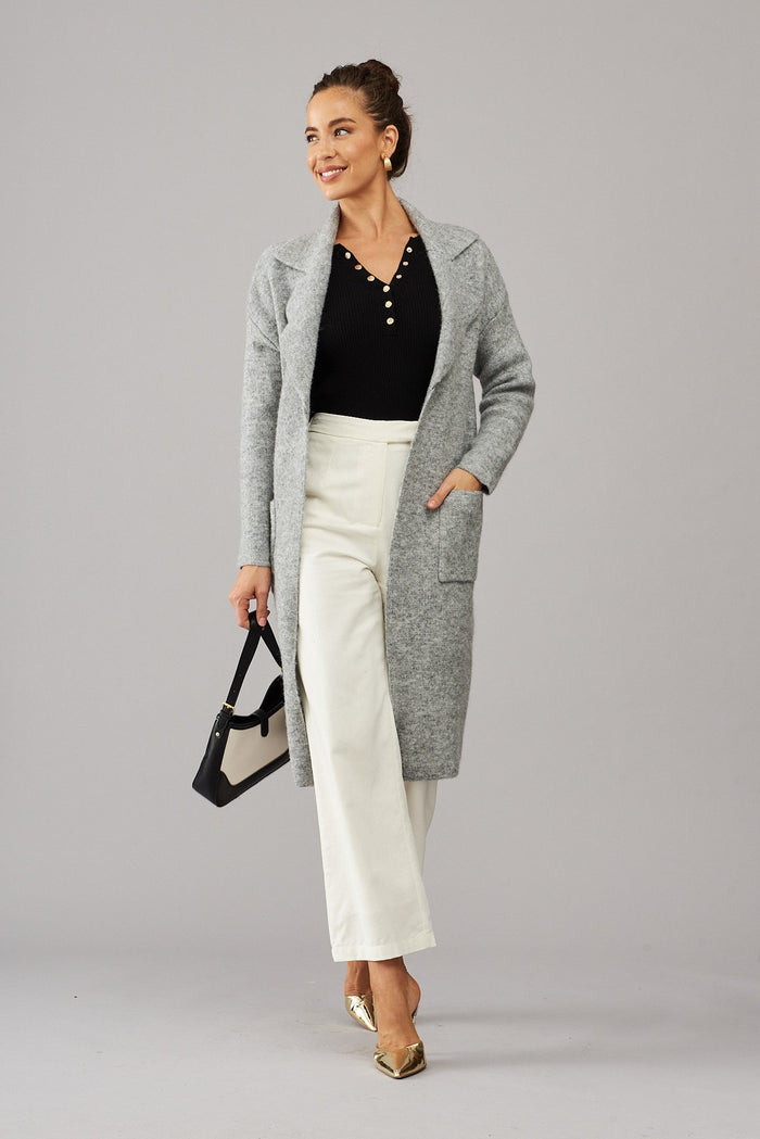 Is it a coat? Is it a cardigan? Our St Ives Coatigan is the perfect fusion of both! Coat-y enough to feel warm and snug, but made with a lighter fabric to make your winter layering a breeze! For those extra chilly days, add a chunky scarf and ankle boots!