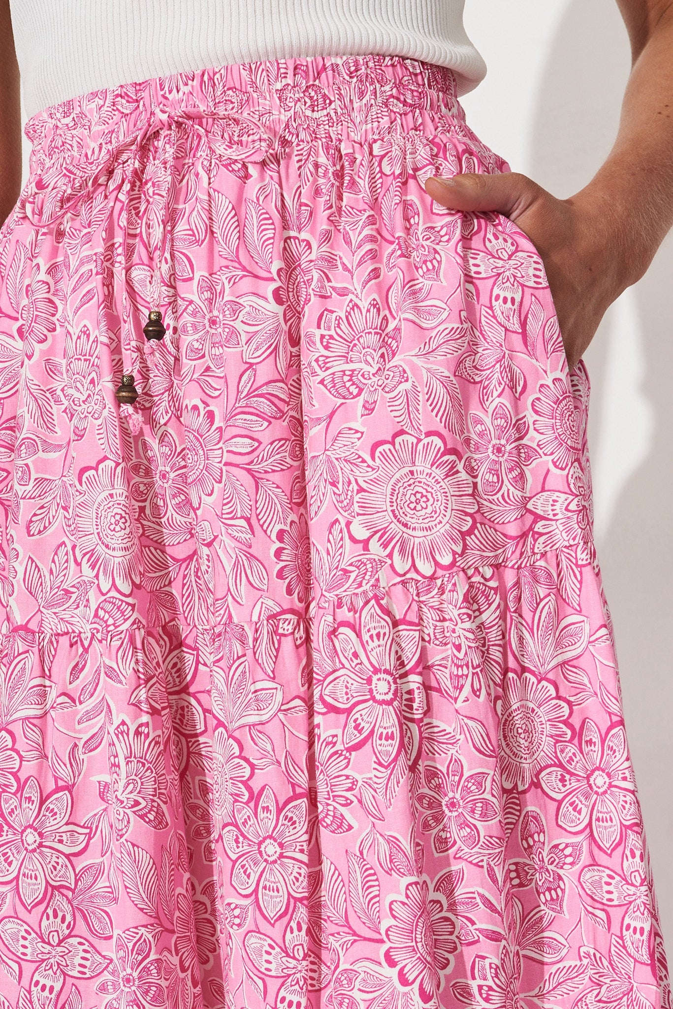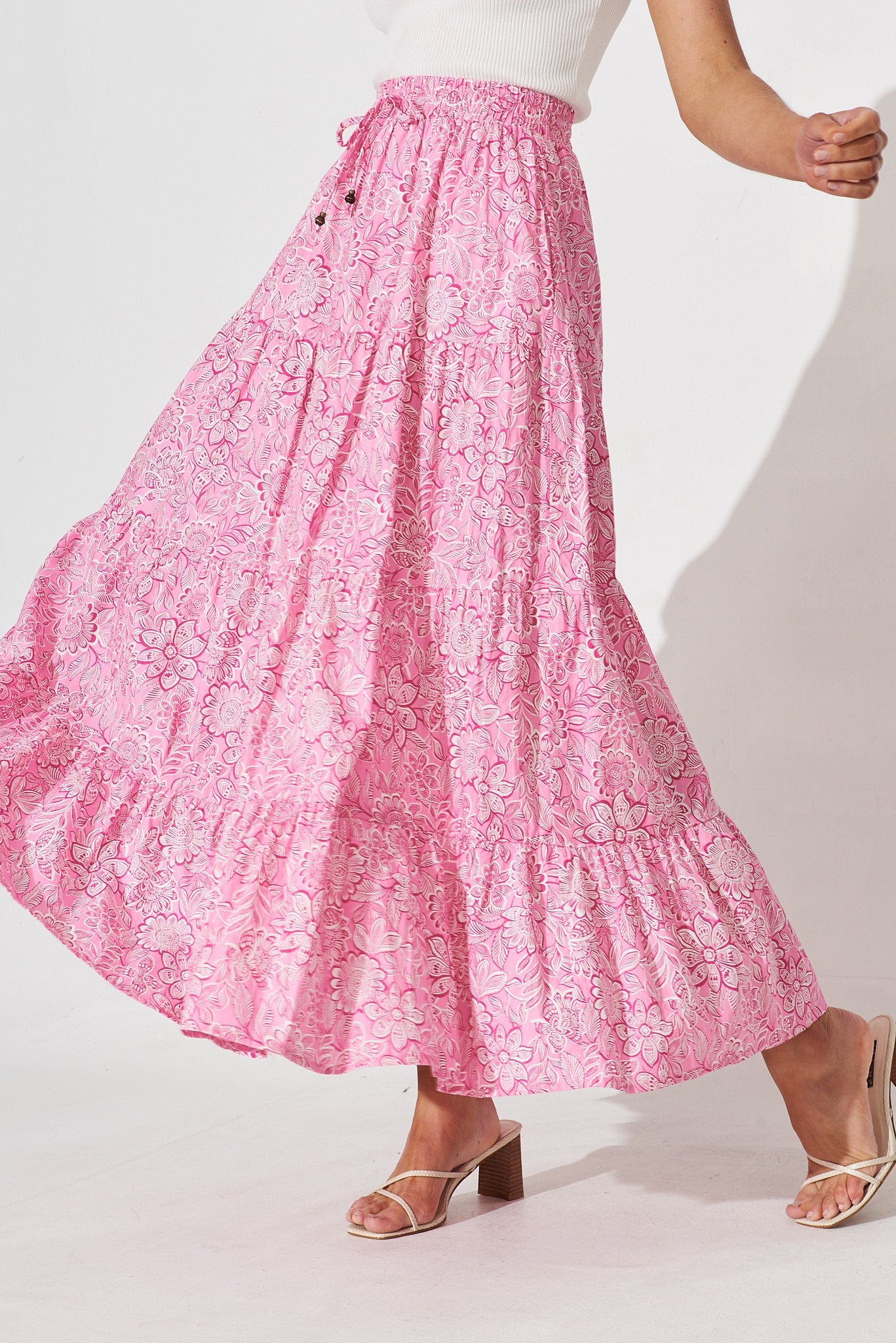 Stirling Maxi Skirt In Pink Floral Cotton