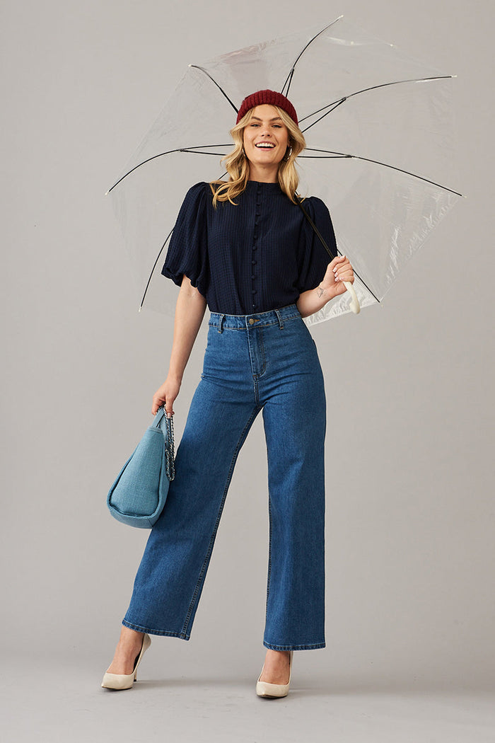 You simply can't go wrong with a blue denim, and our Tarrasa Denim Pant is no exception! Easy to wear, easy to style, and the perfect addition for your transeasonal wardrobe! For a timeless look, wear with a white tee, sneakers, and tote!