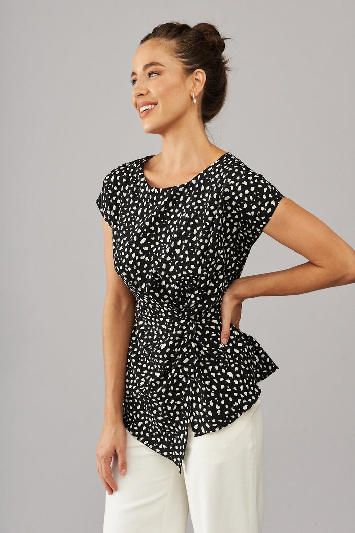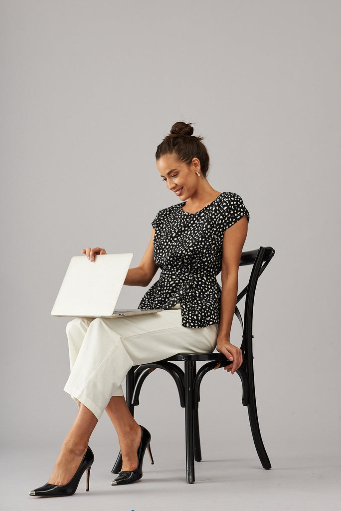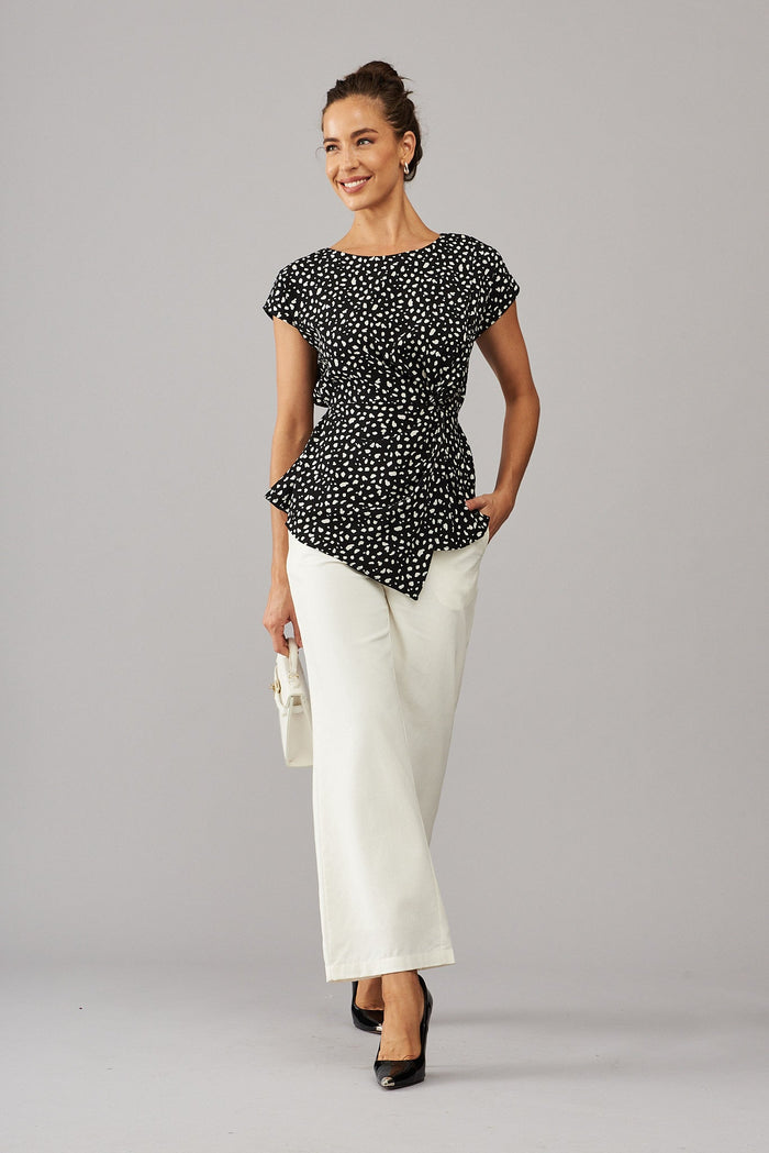 It's the twist accent that gives our Thania Top that elevated feel! This top was made to jush up your jeans, or wear with a pair of tailored pants for some cool girl office attire!