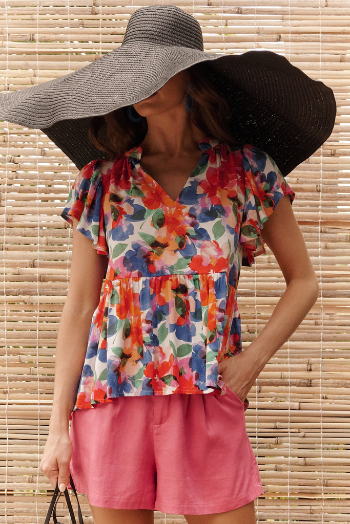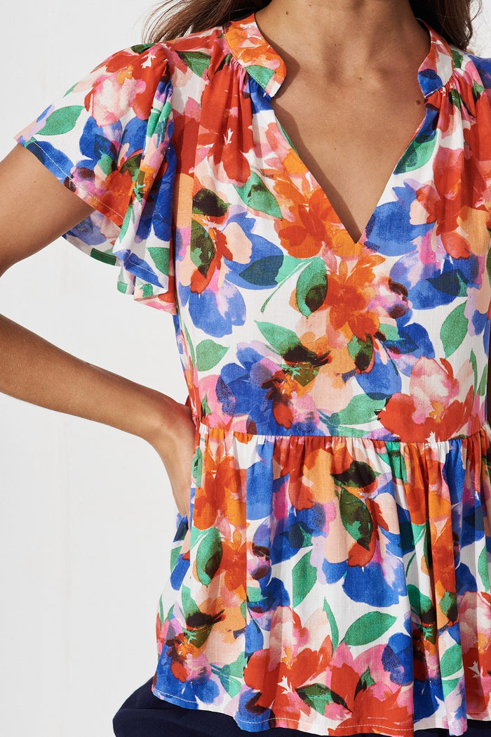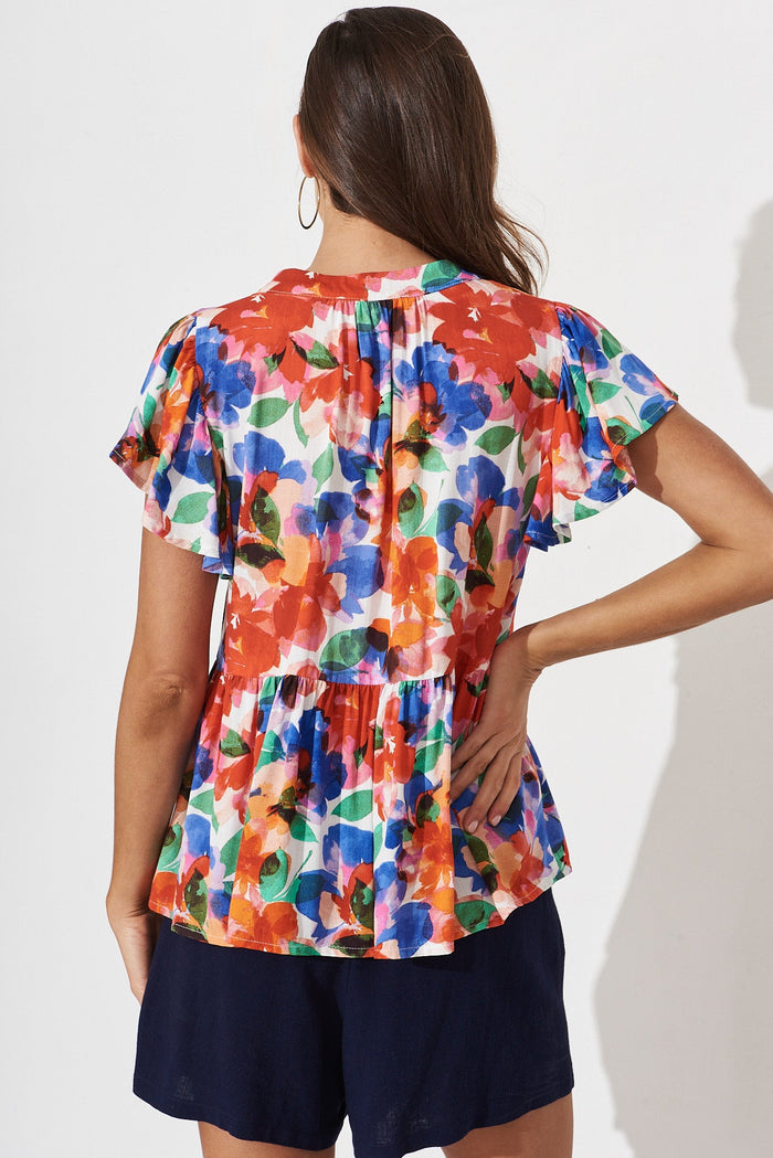 Tiarnelle Top In White With Multi Floral