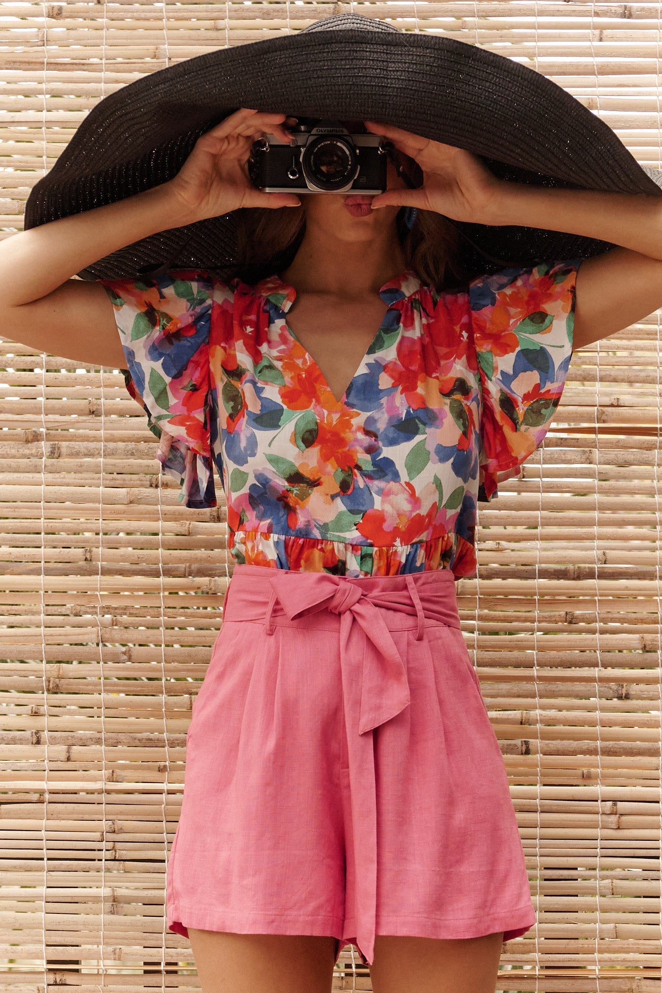 Relax and unwind in the Unplugged Linen Shorts! Crafted from a luxurious cotton/linen blend, this style is finished in a classic high-waisted, pleated short. Dress yours up with a slinky cami and minimal heels or down with a tee and sandals!