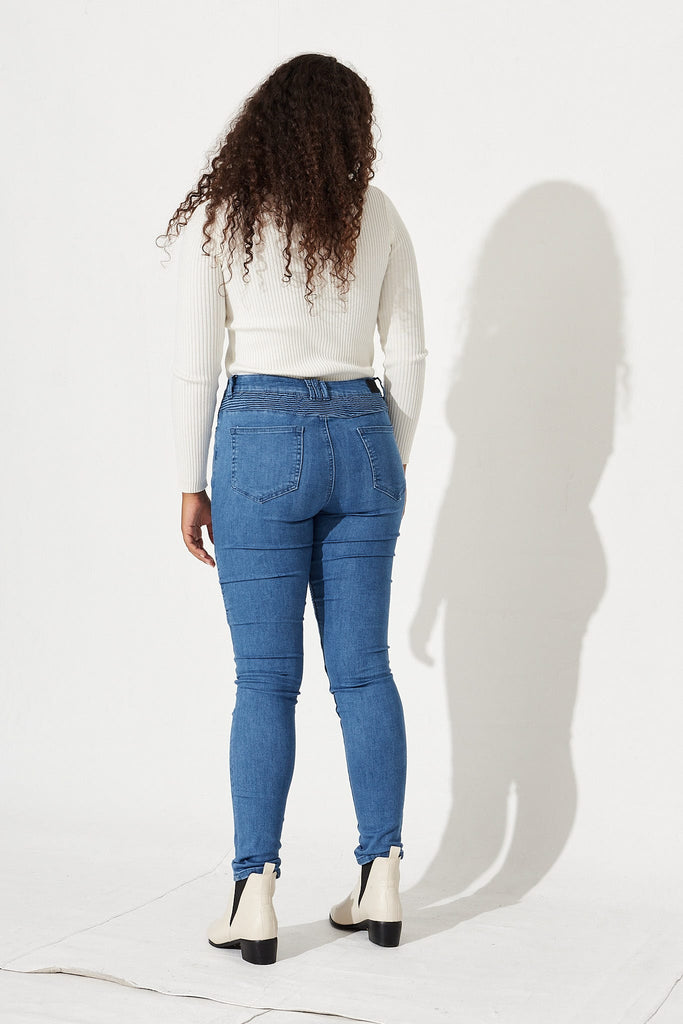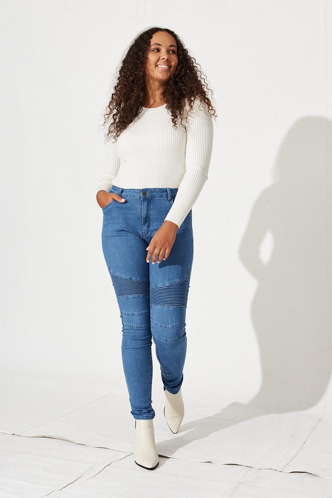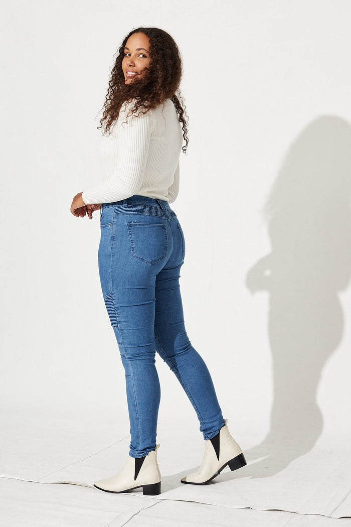 Worldly Biker Jeans In Pale Blue Wash Denim
