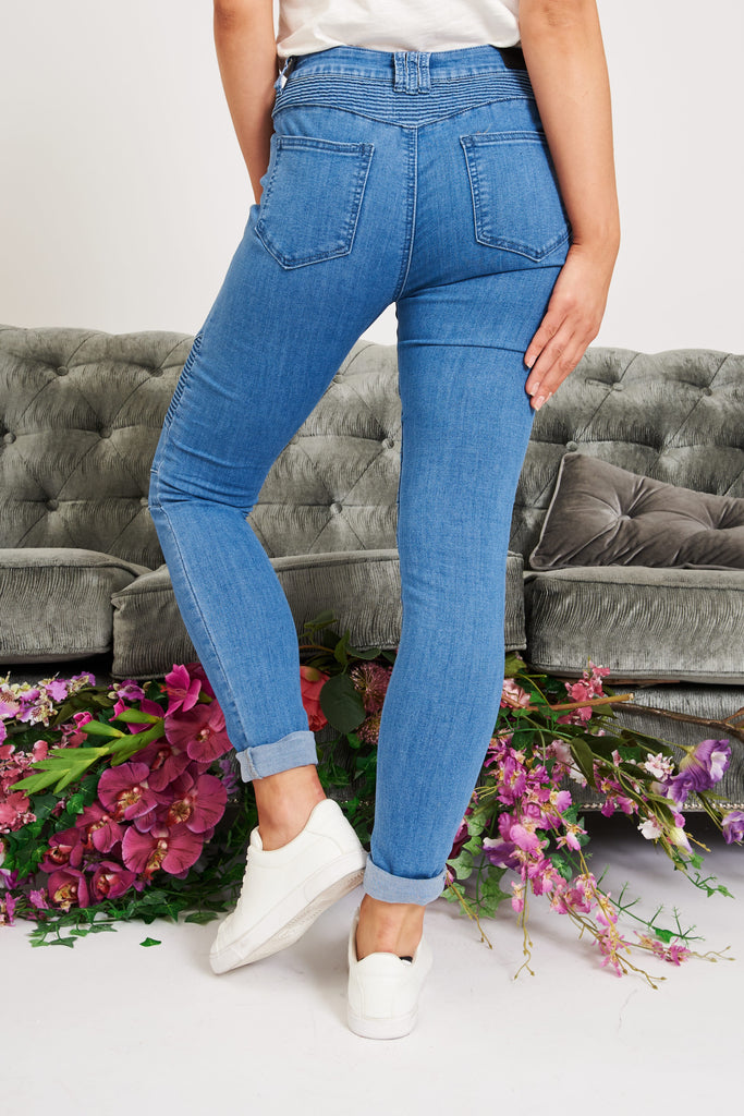 Rule your world in our Worldly Biker Jeans. Just add sneakers for school pick up, boots for shopping trips and a sexy heel for a night out with the girls.